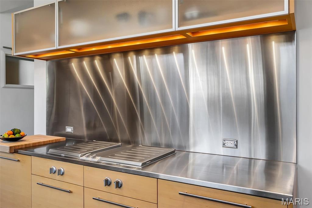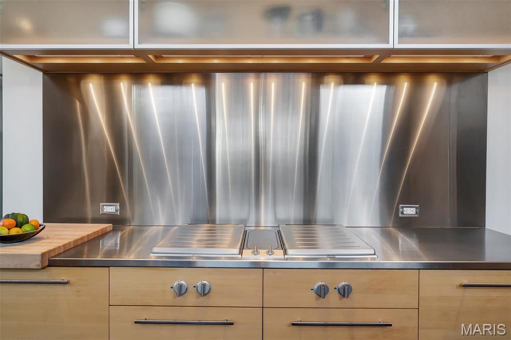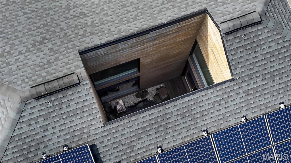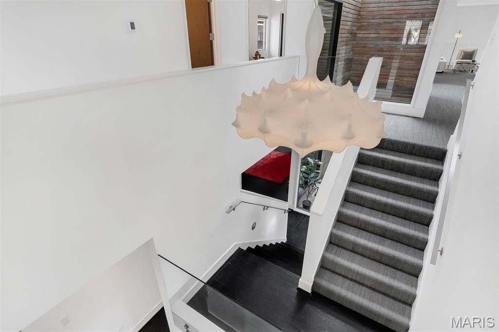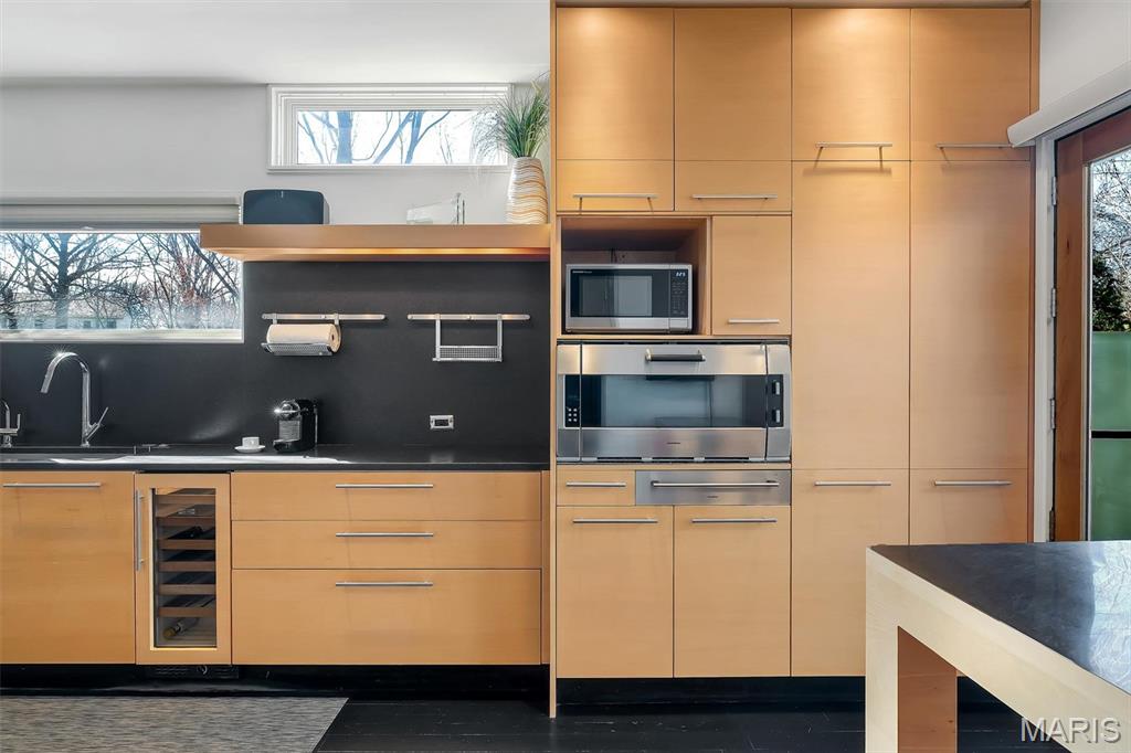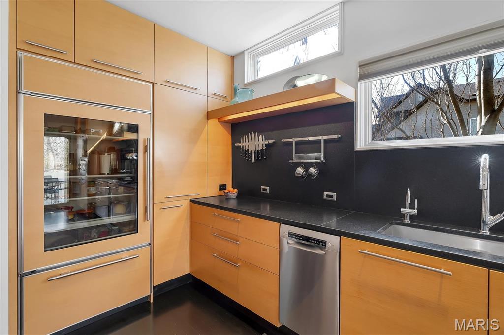 Experience modern luxury living at its finest in this architect-designed contemporary residence, located just blocks from Clayton. Thoughtfully crafted by the late architect Philip Duram, this custom-built home blends striking design with everyday functionality, creating a light-filled retreat characterized by soaring ceilings, natural materials, and seamless indoor-outdoor living. A dramatic two-story open living space showcases tongue-and-groove hickory flooring, expansive insulated windows, and a stunning open-air atrium featuring a Japanese rock garden framed by a cypress rainscreen system. Clean architectural lines and gallery lighting provide an ideal backdrop for art and entertaining. The European-inspired kitchen is both sophisticated and functional, equipped with honed granite countertops, stainless steel backsplash, and custom beech cabinetry that includes pull-out pantry storage. Premium appliances include a Gaggenau gas cooktop with electric grill, an island hood, a built-in oven, a Sub-Zero refrigerator, and a wine cooler. From the kitchen, step outdoors to a well-designed, modern private sanctuary boasting a two-tier Ipe deck, a custom gas firepit, architectural lighting, and landscaped grounds featuring a dry creek bed with polished river rock and sculptural boulders, highlighted by a unique Cor-Ten Steel privacy fence. The first-floor primary suite serves as a private retreat with a spa-inspired bath featuring heated marble floors, an Agape soaking tub and sink, marble vanity, and a luxurious shower with a waterfall head, bench seating, and body sprayers. The second floor offers three additional bedrooms, complemented by a full bath and an open, lofted area with custom contemporary glass railings overlooking the main living area. Ideal space for relaxing or a home office if desired. The partially finished walk-out lower level expands the home’s flexibility with heated slate flooring, a spacious laundry area with custom cabinetry, a full-size refrigerator/freezer, a dressing area with built-ins, and a mirrored fitness space. Additional highlights include a solar system, EV-charger readiness, a two-car garage with storage cabinetry and workshop area, a security system, irrigation, and thoughtfully integrated architectural details throughout. Publication awards include the St. Louis Architects Large Design Award - 2009 and the St. Louis Design Magazine - 10 Most Beautiful Homes - Sept/Oct 2019 issue. A rare opportunity to own a distinctive contemporary home in a prime location near Clayton, offering design, privacy, and modern efficiency.