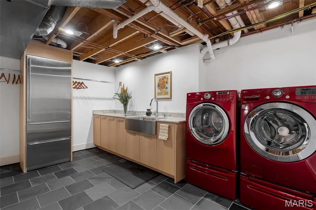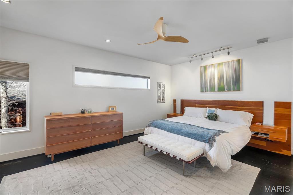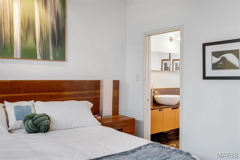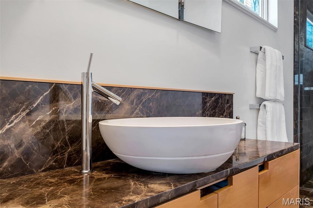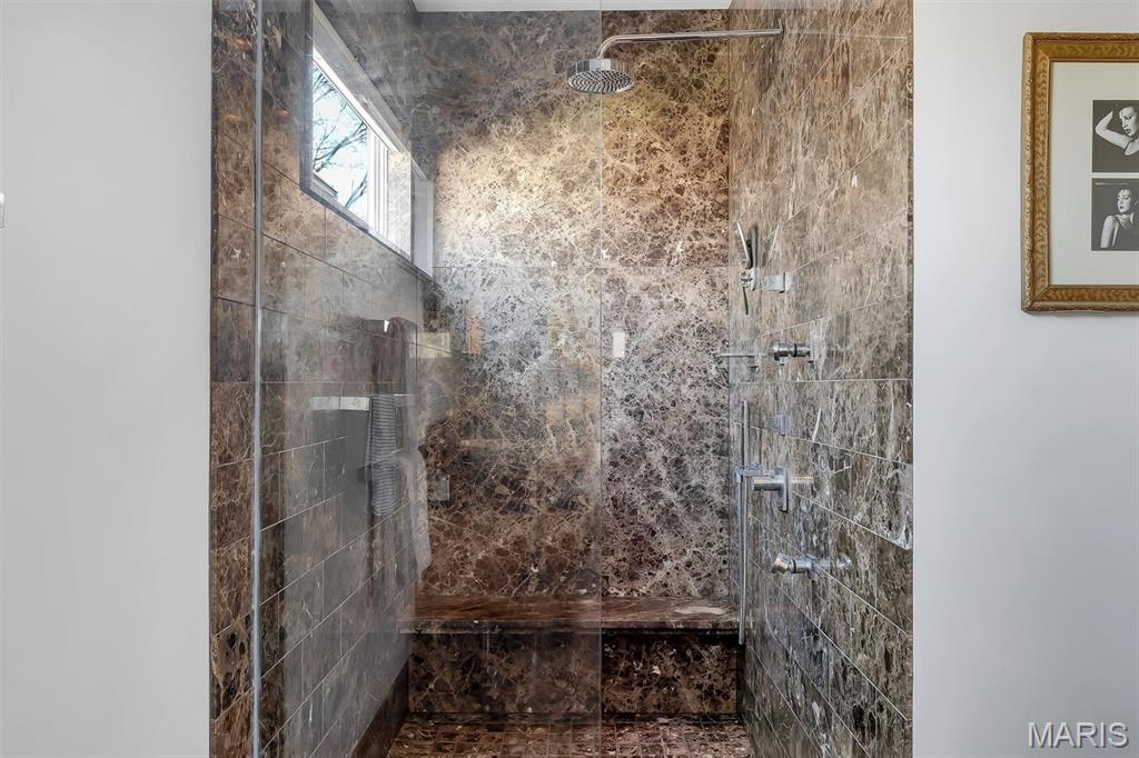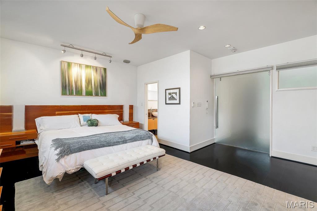 Experience modern luxury living at its finest in this architect-designed contemporary residence, located just blocks from Clayton. Thoughtfully crafted by the late architect Philip Duram, this custom-built home blends striking design with everyday functionality, creating a light-filled retreat characterized by soaring ceilings, natural materials, and seamless indoor-outdoor living. A dramatic two-story open living space showcases tongue-and-groove hickory flooring, expansive insulated windows, and a stunning open-air atrium featuring a Japanese rock garden framed by a cypress rainscreen system. Clean architectural lines and gallery lighting provide an ideal backdrop for art and entertaining. The European-inspired kitchen is both sophisticated and functional, equipped with honed granite countertops, stainless steel backsplash, and custom beech cabinetry that includes pull-out pantry storage. Premium appliances include a Gaggenau gas cooktop with electric grill, an island hood, a built-in oven, a Sub-Zero refrigerator, and a wine cooler. From the kitchen, step outdoors to a well-designed, modern private sanctuary boasting a two-tier Ipe deck, a custom gas firepit, architectural lighting, and landscaped grounds featuring a dry creek bed with polished river rock and sculptural boulders, highlighted by a unique Cor-Ten Steel privacy fence. The first-floor primary suite serves as a private retreat with a spa-inspired bath featuring heated marble floors, an Agape soaking tub and sink, marble vanity, and a luxurious shower with a waterfall head, bench seating, and body sprayers. The second floor offers three additional bedrooms, complemented by a full bath and an open, lofted area with custom contemporary glass railings overlooking the main living area. Ideal space for relaxing or a home office if desired. The partially finished walk-out lower level expands the home’s flexibility with heated slate flooring, a spacious laundry area with custom cabinetry, a full-size refrigerator/freezer, a dressing area with built-ins, and a mirrored fitness space. Additional highlights include a solar system, EV-charger readiness, a two-car garage with storage cabinetry and workshop area, a security system, irrigation, and thoughtfully integrated architectural details throughout. Publication awards include the St. Louis Architects Large Design Award - 2009 and the St. Louis Design Magazine - 10 Most Beautiful Homes - Sept/Oct 2019 issue. A rare opportunity to own a distinctive contemporary home in a prime location near Clayton, offering design, privacy, and modern efficiency.