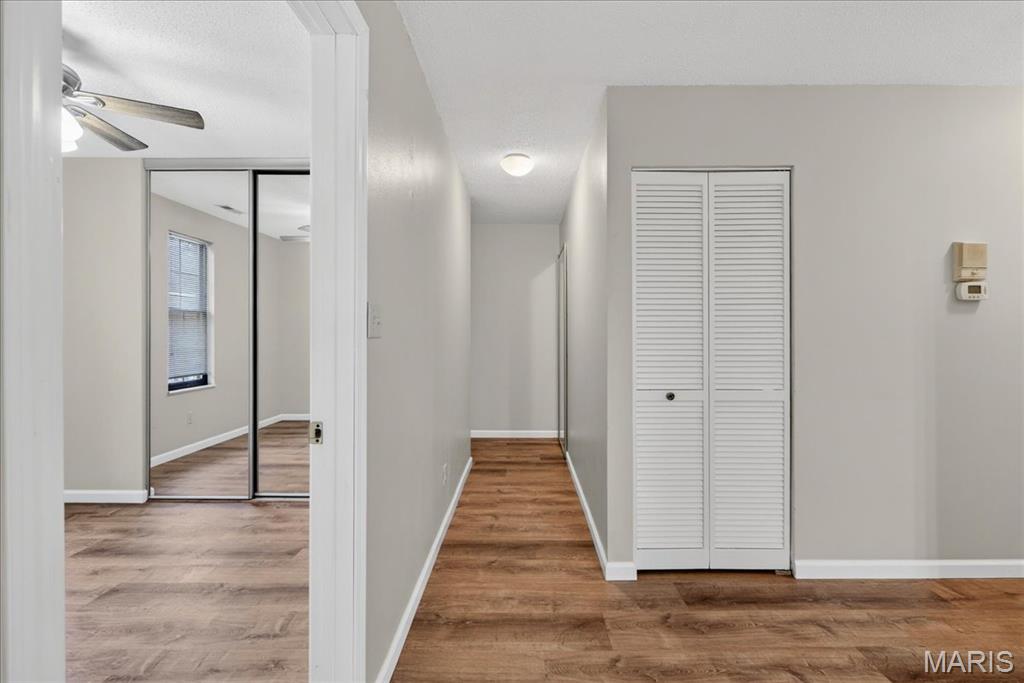 Discover this beautifully maintained 2-bedroom, 1-bathroom apartment-style condo in the highly desirable Maryland Heights, perfectly located just moments from Creve Coeur Lake Park and within walking distance to the community pool. This inviting home features luxury vinyl plank flooring throughout the main living areas, stylish 6-panel doors, and a bright, open-concept layout that seamlessly connects the living room, dining area, and kitchen—ideal for both everyday living and entertaining. The kitchen offers ample countertop space, generous storage, and a stainless steel dishwasher, making meal prep both functional and enjoyable. Step outside to your private deck balcony, where you can relax with your morning coffee while taking in peaceful views of mature trees and a tranquil creek. Adding to the appeal is a highly affordable $300/month condo fee that covers water, sewer, trash, snow removal, access to the community pool, and more—providing exceptional value and low-maintenance living. This is a fantastic opportunity to own a move-in-ready home in a prime location with nature and convenience right at your doorstep.