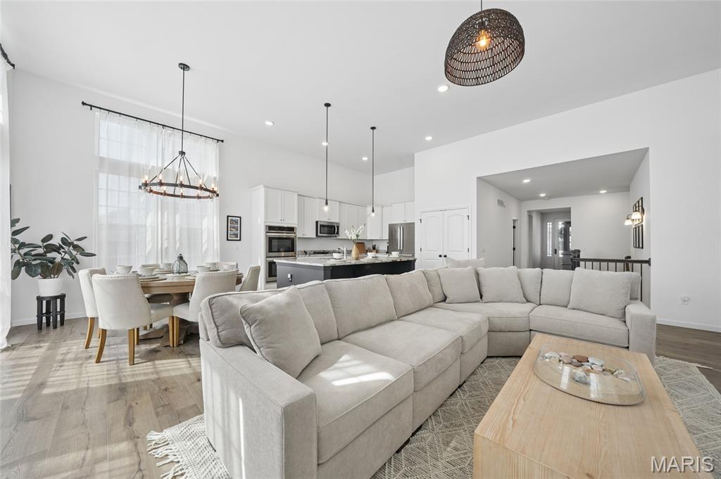 Welcome to 2472 Grover Ridge Drive! This well maintained home in the Main Street Crossing community is a true gem and you don’t want to miss this charming neighborhood! The main level features high ceilings, an open concept floor plan ideal for entertaining, and is filled with all the natural light you’ll ever desire. The gorgeous kitchen, complete with a large island, custom cabinets, full pantry, and stainless steel appliances is a true chefs dream. Retreat to the spacious primary suite designed for comfort and privacy. This inviting space features a generously sized bedroom; the perfect place to unwind at the end of the day. The suite includes a private en-suite bathroom with a double vanity, separate shower, and soaking tub, offering a spa-like feel at home. A large walk-in closet provides ample storage and organization, completing this thoughtfully designed owner’s retreat. The main level also features 2 other bedrooms and full bathroom. The lower level is finished with a large recreation room, 4th bedroom with egress window, private office, full bath, and tons of storage. (square footage is an estimate at this time) Across the street from the Wildwood Greenway walking trail and minutes from Wildwood Dog Park and Wildwood Town Center, make this home ideal for blending nature and community. This home has been meticulously maintained and reflects true pride of ownership. If you’re looking for a nearly new built home with sophistication, style, and comfort, you’ll love this one! Showings begin March 27 at noon. Professional photos coming with floor plans and virtual tour.