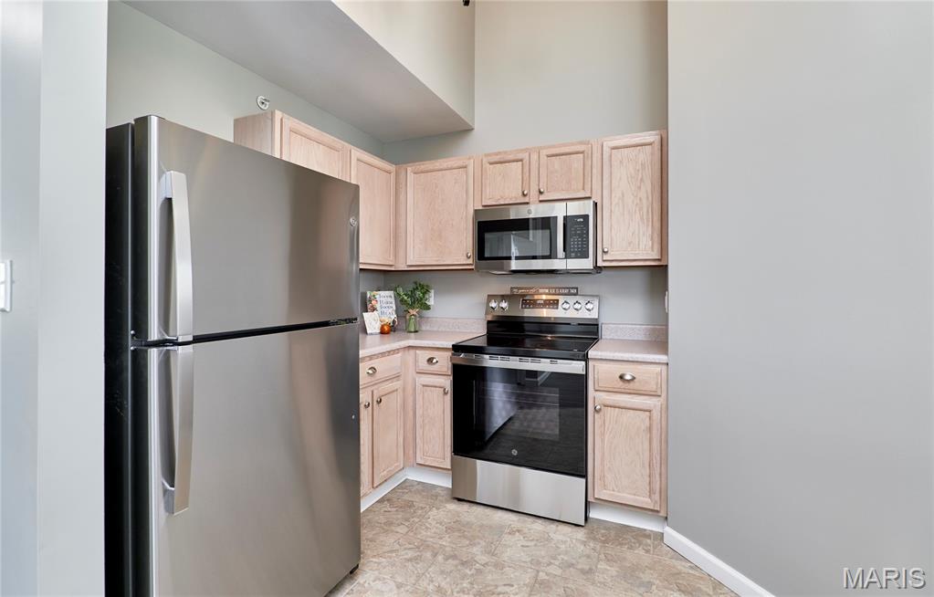 Welcome to this beautifully updated, move-in-ready upper-level condo! Step inside to a vaulted, open floor plan with luxury vinyl flooring, new carpet, fresh neutral paint, and plenty of natural light. The kitchen boasts new stainless-steel appliances. The spacious primary suite offers a vaulted ceiling, walk-in closet and an en suite with a tub/shower surround. The second bedroom features dual closets and a vaulted ceiling. This home with monthly HOA fee includes water, sewer, trash, snow removal, grounds maintenance, some exterior insurance and the convenience of an in-unit washer and dryer that stay with the home. Enjoy added perks like a private storage room and a shared garage. The community offers walking trails, pools, fishing ponds and play areas for outdoor enjoyment. Say YES to the Address and make this lovely home yours!