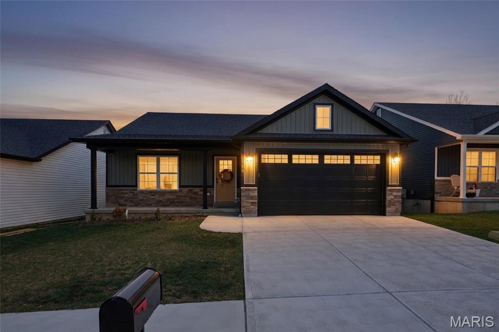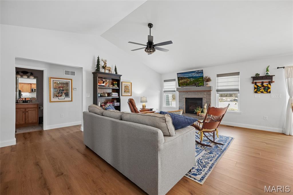 Step into this stunning new ranch-style home built in 2025, offering fantastic curb appeal and a bright, open floor plan. As you enter, you’ll immediately notice the open-concept layout featuring altered/vaulted ceilings, abundant natural light, and beautiful hardwood floors throughout the main living areas. The spacious great room with vaulted ceilings flows seamlessly into the kitchen, creating the perfect space for everyday living and entertaining. The kitchen features custom cabinetry, a center island with seating, modern lighting, and all stainless-steel appliances. The primary bedroom is conveniently located on the main floor and features large picture windows that create a relaxing and inviting atmosphere. Custom window treatments add an extra touch of style throughout the home. Step outside to enjoy the covered deck overlooking the backyard, offering a peaceful place to unwind. This home also includes all appliances, including a water softener, making it truly move-in ready. Conveniently located in a quiet area with easy access to local highways, shops, and coffee spots, this home combines comfort, style, and convenience.