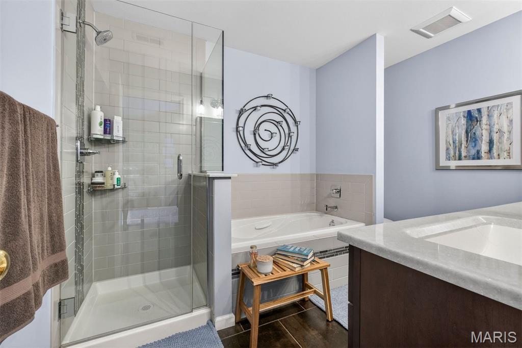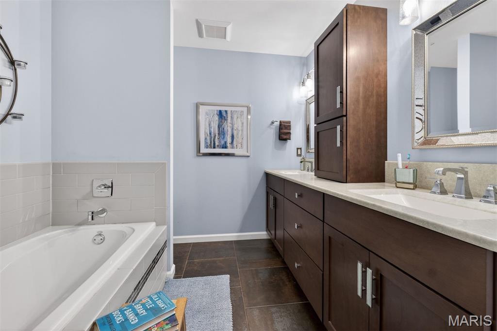 Welcome home to a thoughtfully updated property where comfort, style, and convenience come together seamlessly. Over the past decade, this home has been meticulously improved with high-quality upgrades that elevate everyday living. Step inside to find new luxury vinyl flooring throughout the main level and plush carpet with upgraded padding, creating a warm and cohesive feel throughout. The kitchen has been beautifully refreshed with painted cabinetry, upgraded countertops, backsplash, modern lighting, added pantry storage, and updated window coverings—making it both functional and inviting. The bathrooms have been tastefully upgraded, including a spa-inspired primary bath featuring a soaking tub, glass-enclosed shower, dual integrated sinks, and custom storage solutions. A standout main-level powder room showcases a copper sink and penny tile, adding a distinctive designer touch. The expansive primary suite is truly one-of-a-kind, offering vaulted ceilings and an impressive footprint with a versatile sitting area—perfect for a home office, reading retreat, or private lounge space. A walk-in closet with a dedicated shoe rack and ample storage throughout the home ensure both comfort and organization. Gather around the updated fireplace with new tile and custom shelving, or step outside to the low-maintenance Trex deck, ideal for entertaining or unwinding. Additional upgrades include: New sliding glass doors on both main and lower levels, New garage door and opener, Updated ceiling fans in bedrooms, Added attic insulation for energy efficiency, Smart thermostat for modern comfort. Beyond the home itself, the lifestyle is exceptional. Located in a friendly, close-knit neighborhood where neighbors truly look out for one another, residents enjoy access to community amenities including tennis and pickleball courts, basketball courts, a pool, clubhouse, and scenic lakes. The location is simply unbeatable—just minutes from it all. Close to SSM DePaul, restaurants, shopping and beautiful Creve Coeur Lake Park. Commuters will also appreciate proximity to major employers including Boeing, Hussmann, McKesson, Bayer, Emerson Electric, and Edward Jones. All of this, plus access to the highly sought-after Patonville School District. This is a rare opportunity to own a move-in ready home with meaningful upgrades, generous living space, and a location that truly has it all