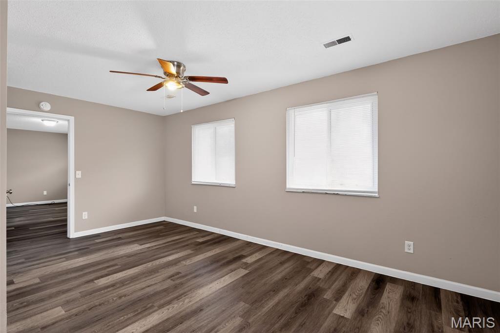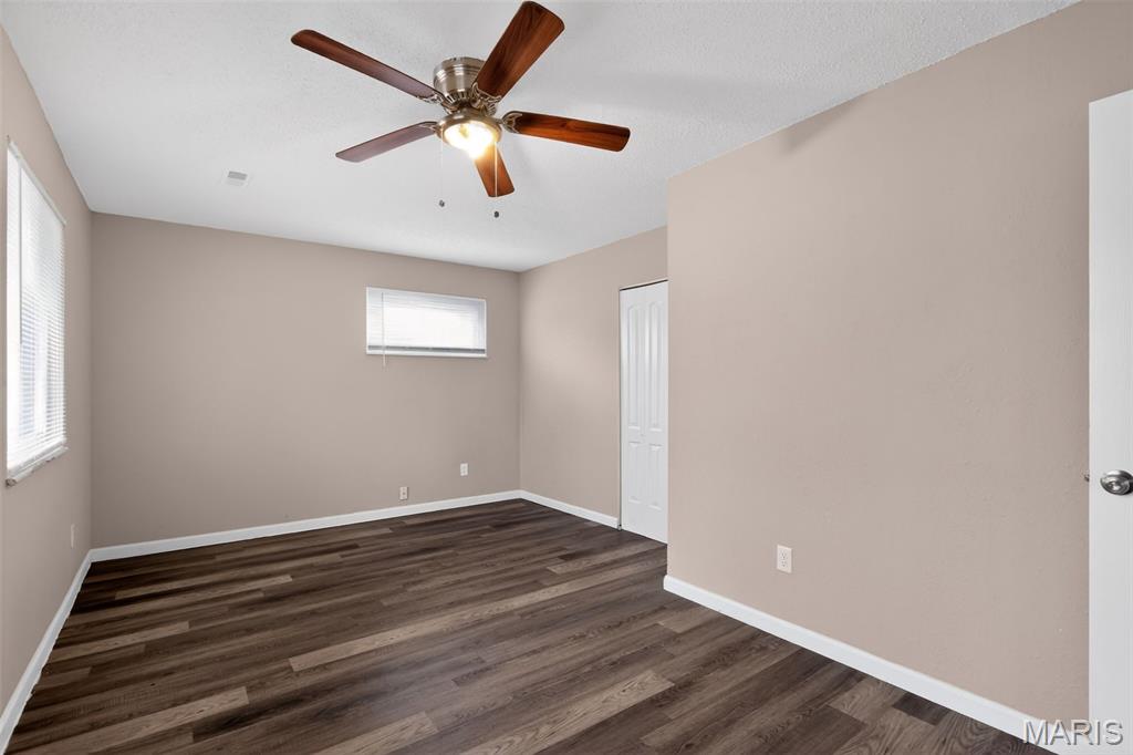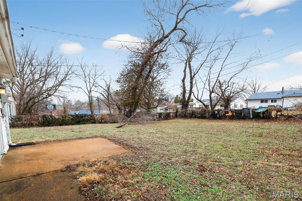 Located in the established Norwood Manor community, this 1,222 sq ft ranch-style residence features a functional 3 bedroom, 1 bathroom single-level floor plan. Built in 1956, the home provides a solid foundation and a traditional silhouette with a classic walk-up entry. The interior is highlighted by newly installed hardwood flooring throughout the primary living spaces and bedrooms, providing a seamless and durable aesthetic. The shower in the main bathroom has been recently updated as well. The heart of the home features an expansive 13x11 eat-in kitchen, equipped with ample cabinetry and significant workspace for meal preparation. The sleeping quarters consist of 3 well-proportioned bedrooms, each designed with consistent hardwood flooring and neutral finishes. The 3rd bedroom is a standout feature, providing a dedicated walk-in closet for enhanced organization. Directly behind the 3rd bedroom, the layout includes a practical 3x10 interior storage space, ideal for household equipment or seasonal items. The exterior of the property is designed for utility and relaxation, featuring an attached carport for convenient off-street parking. The 0.17 acre lot is characterized by a level backyard, fully enclosed with a chain-link fence for clear boundary definition. Mature trees line the perimeter of the lot, providing a natural backdrop and established curb appeal. A large back patio serves as an expansive outdoor living area, perfect for seating and activities. Positioned within the Normandy area, this home provides easy access to the I-70 corridor for streamlined commutes to downtown Saint Louis and surrounding areas. The property is located near local recreation at Bermuda Park and is served by the Normandy Schools Collaborative. With its 1,222 sq ft footprint and functional exterior features, this residence provides a traditional layout and significant space for customization in the 63121 zip code.