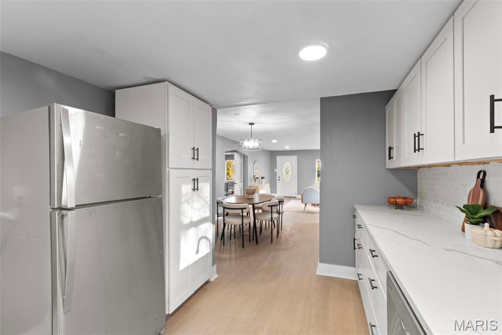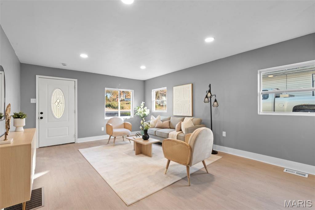 NEWLY REFRESHED 3-bed, 1-bath home in Breckenridge Hills. With easy access to all major highways and everyday amenities, this move-in-ready home blends comfort with convenience. Step inside to find a bright, open layout with fresh paint, updated flooring, and stylish finishes throughout. The NEW KITCHEN features sleek countertops, updated cabinetry, and stainless-steel appliances. Three comfortable bedrooms provide flexibility for guests, a home office, or growing household needs. Outside, enjoy a spacious fenced in yard and backyard patio—perfect for relaxing or entertaining. This home features a newer roof, siding, and windows. Plus a new driveway and walkway with all new front landscaping! Ideal for first-time buyers or anyone seeking a beautifully refreshed home in a central St. Louis location!