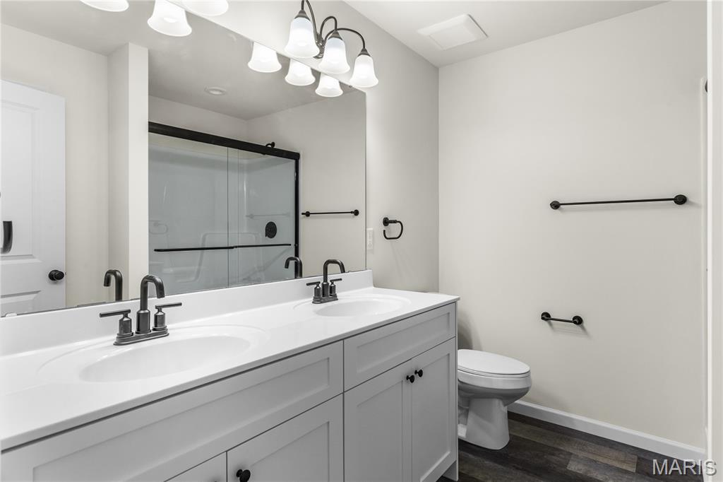 Outstanding opportunity to own a BRAND NEW home in Maryland Heights at an affordable price! This 3 bed, 2 bath home is under construction and nearing completion! Estimated completion May 2026! Lots of upgrades and premium features throughout! Some brick on front exterior. THREE car garage! LVP flooring running through hall, great room, kitchen, dining, and laundry! Custom kitchen cabinets with quiet close doors and drawers, granite countertops, and stainless steel appliances! Huge center island with bar stool seating! Separate dining room. Vaulted ceiling in great room for an open feel throughout main living areas. Primary bedroom suite boasting vaulted ceiling, large walk in closet, and private full bath with double bowl vanity. Unfinished rec room with rough in bath and egress window. Just minutes from shopping, dining, schools, and easy access to highway 270 and 367!