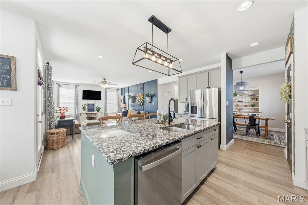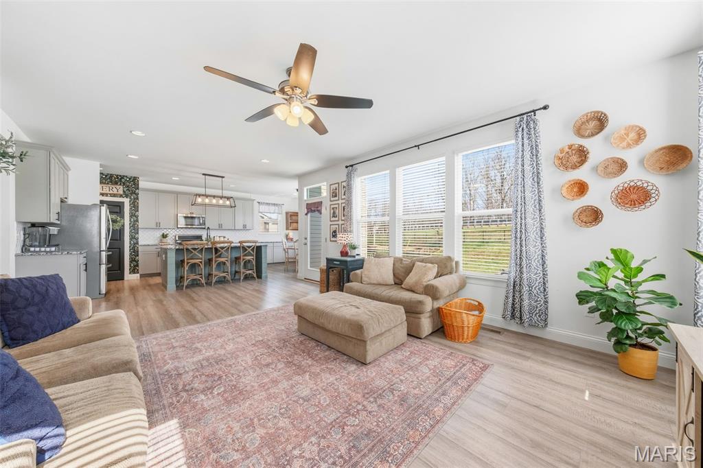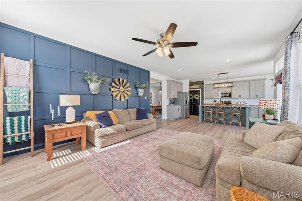 Full of charm and thoughtfully curated updates, this beautiful 2-story home blends modern construction with custom character throughout. Stylish accent walls, board-and-batten trim, statement lighting, and a beautifully designed kitchen featuring an oversized island and charming pantry create a warm, inviting feel that sets this home apart from typical builder-grade finishes. Located on a quiet cul-de-sac in the highly sought-after Wentzville School District and Liberty High School boundaries, this home offers 4 bedrooms, 2.5 baths, and over 2,700 square feet of living space, plus a 3-car garage and spacious back yard. The open floor plan features 9’ ceilings, comfortable living spaces for gathering and entertaining, and a kitchen that flows seamlessly into the main living area. Additional highlights include a main-floor office/den, loft space, and convenient second-floor laundry, along with a spacious primary suite featuring double sinks, a soaking tub, and separate shower. The unfinished basement has begun framing for a future sleeping area and bathroom, offering a great head start for buyers looking to finish the space and add additional living area. This home offers the perfect combination of style, functionality, and personality in a wonderful Wentzville location.