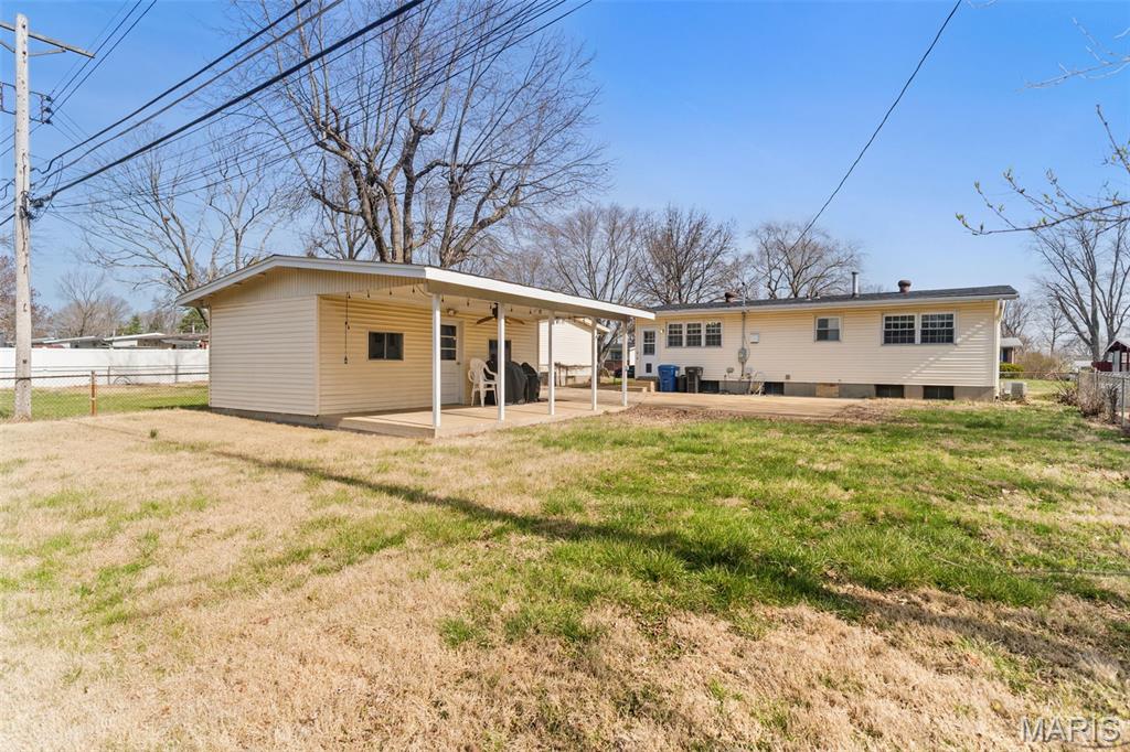 Welcome home to this charming Florissant property offering comfort, convenience, and great outdoor living! This well-maintained home features a bright interior highlighted by a beautiful bay window that fills the space with natural light, along with a primary bedroom that includes a private half bath. The partially finished lower level offers a versatile bonus room—perfect for a home office, recreation space, or additional living area. Enjoy the added value of a roof that’s less than a year old, a 1-car oversized detached garage providing plenty of room for a vehicle, storage, or hobbies. Step outside to a fully fenced yard and an impressive, covered porch with a ceiling fan—ideal for relaxing or entertaining with plenty of space for outdoor furnishings. Conveniently located near shopping, dining, parks, and major highways, this home is a fantastic opportunity you won’t want to miss!