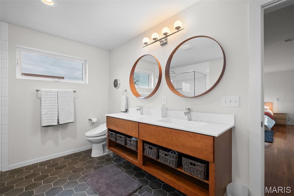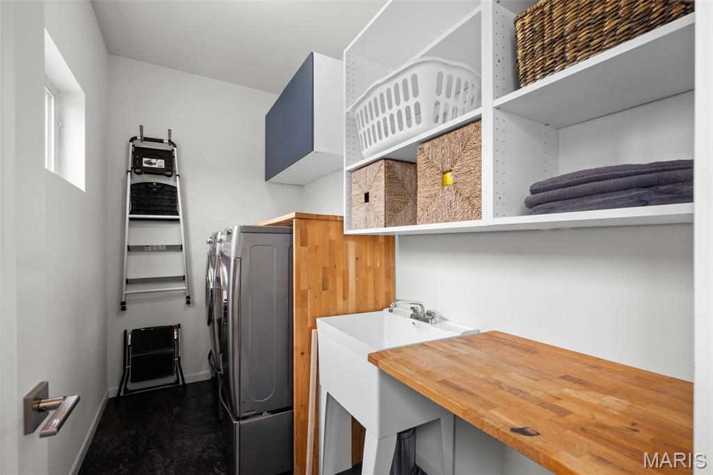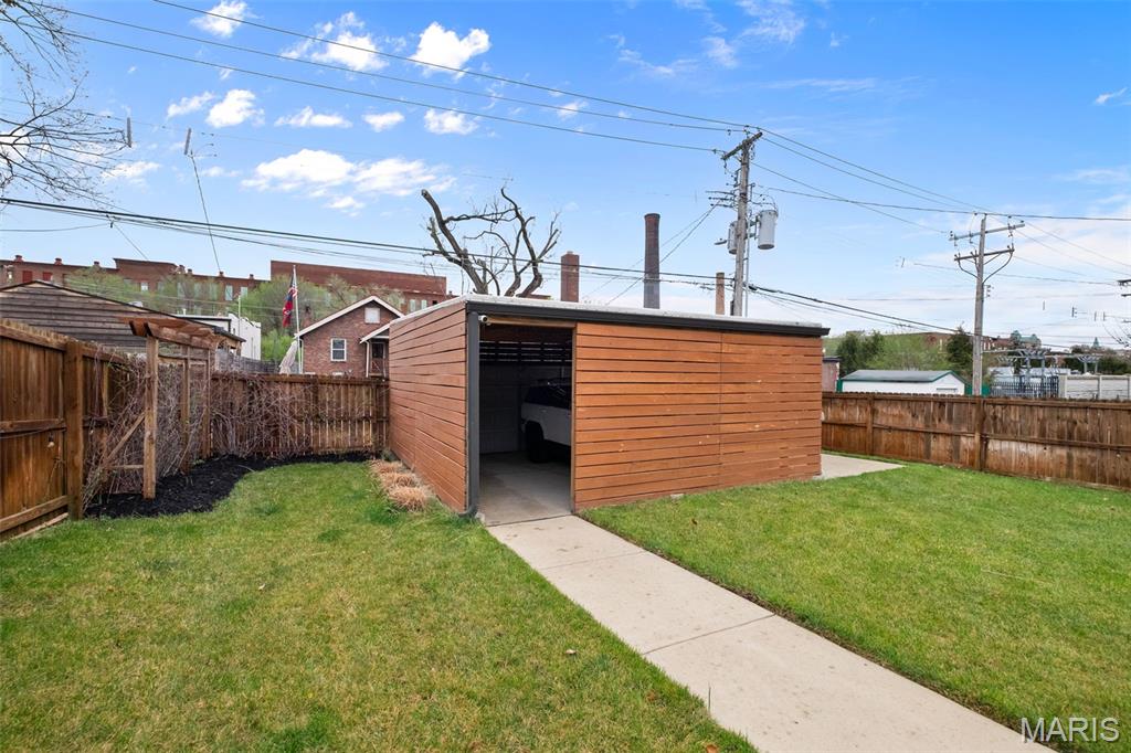 OPEN Sat. 4/4 12-2. If you are looking for a unique contemporary home in the city, look no more! 4143 Blaine is simply the dreamiest home in Botanical Heights. Travel down the quiet one-way Blaine Avenue to your modern beauty, built in 2018. Enter into a light-filled space with hardwoods which features your dining room and a flexible area that could be used for an office, art studio, play room and more! A half bathroom with cheery wallpaper is tucked away in a inconspicuous corner for privacy. Notice the artistic detailing of the two story custom built architectural wood and metal staircase which sets the tone for the two show stoppers of this floor: the living room and kitchen. The living room is simply drenched in natural light as a former glass garage door was converted in a wall of windows inviting nature in with a sweeping view of your green space. This transitions seamlessly into the kitchen which features Caeasarstone quartz countertops w/an oversized island & waterfall edge, high end appliances, undercounter built-in microwave, 42 inch soft close cabinets and a pantry that meets all your storage needs! Behind the kitchen, check out the mudroom area and a laundry suite. Upstairs, open the double door entry to your primary suite with two LARGE walk-in closets and a spa-like bathroom featuring a deep soaker tub for all your relaxation needs. All closets upstairs are California custom closets. Around the corner, another full bathroom and two good-sized bedrooms round out the floor. The basement is an unexpected treat with two separate living spaces. The first has a bedroom with a true egress window and an abundance of space for a sitting area or office. Pass the full bathroom (making this floor particularly well suited to a guest suite) to your entertainment area which showcases a kitchenette with a retro refrigerator, sink, and a cinema room. And somehow, these spaces are also very bright and do not remotely feel like a basement. Outside, a DOUBLE lot is rare and perfect for kiddos and fur babies. Don't miss the the pergola with berry bushes growing in the corner as you head to your two car garport with an extra storage shed built in. A wall has been built in front of the cars so that your view is unimpeded from your COVERED patio right outside the back door. If the house itself hasn't swept your off your feet yet, the location is chef's kiss: two blocks from City Garden Montessori School, a few blocks to Union Loafers, La Patisserie Choquette, AO & Co, Indo and other restaurants. It's a short walk to the Botanical Gardens and a slightly longer walk to Tower Grove Park. Easy access to both I-44 and I-64 and it's adjacent to the new Tower Grove bike lane (Tower Grove Connector). This home has also already passed occupancy! The cherry on top: a Tax Abatement through the end of 2028 saving you thousands in taxes. :) Hurry to own this very special home just in time to enjoy the spring in your backyard.