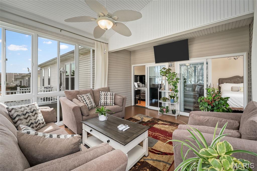 Showings to begin on 3/26/26. 2 OPEN HOUSES PLANNED: THURS., 3/26 5:00-7:00PM AND SUN., 3/29 1:00-3:00PM. Welcome to this 55+ Community with lots of activities & amenities. Walking in you are greeted by 9' ceilings with numerous Sky Lights that stream in natural light, beautiful hardwood floors, neutral paint throughout & lots of thoughtful updates that make this Villa one of a kind! But the real SHOW STOPPER of this home is the 16' x 13' Four Seasons Sunroom that has it's own MiniSplit HVAC system that keeps you comfortable year-round! Perfect for your morning coffee or evening glass of wine. Home is equipped with a sprinkler system and Central Vac that makes cleaning quiet & easy! Sellers are building a home out of state to be closer to their new grandbaby. Flexibility in closing is appreciated, but for the right situation can be altered.