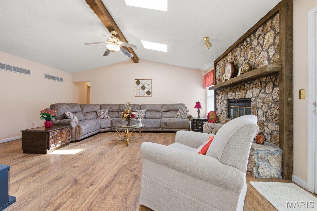 Step into style and space in the heart of booming St. Peters, Missouri! This beautifully appointed 3+ bedroom, 2.5 bath home combines timeless charm with modern upgrades in a highly desirable location close to highways, shopping, dining, and everyday conveniences. From the moment you enter, you’ll be captivated by soaring cathedral ceilings with skylights and elegant crystal doorknobs that add a touch of character throughout. The spacious, light-filled floor plan flows effortlessly into a stunning kitchen featuring gleaming granite countertops and custom wood cabinetry—perfect for both daily living and entertaining. Retreat to the expansive primary suite, featuring a generous 16x14 layout for unwinding & meditation. Two additional bedrooms and a main-floor laundry for convenience. The finished lower level offers incredible versatility, with a large family room, a private office or possible 4th bedroom, and an additional bathroom—ideal for guests, work-from-home needs, or extended living. An oversized 2-car garage, and newer concrete flatwork ( driveway, sidewalk, and garage floor), enhancing both function and curb appeal. With space, updates, and location all in one, this home is a standout opportunity in one of St. Peter’s fastest-growing areas. Pro Pics Coming Soon