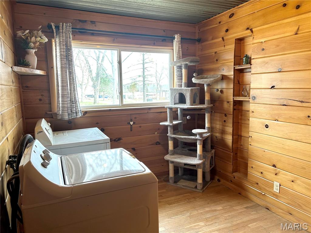 Charming Rustic Ranch on A Half Acre in Rockwood School District Situated on a half-acre lot just minutes from Highway 44, this unique property offers the perfect blend of charm, functionality, and opportunity—located in the highly sought-after Rockwood R-VI School District. This Amazing Three-Bedroom, Two-Bath Ranch Home sits on a Large Level lot and features low-maintenance vinyl siding, newer windows, and a durable metal roof—built for both Comfort and Longevity. This Ranch Home may work well for a handicapped individual, with some modifications. The outdoor space is truly a highlight. Enjoy a large back patio perfect for barbecuing and entertaining family and friends. The expansive yard offers plenty of room for kids and pets to play, space to kick a soccer ball or play catch, and even room for a Large Garden. The property provides a sense of Privacy, surrounded by a Natural Tree line. Inside, you’ll find beautiful hardwood floors and warm knotty pine accents throughout much of the home, creating a cozy, rustic feel. Unique touches like corrugated tin ceilings add character, while the open floor plan with vaulted ceilings creates a spacious and airy atmosphere. Additional Features include 3 Generously Sized Bedrooms, a Main-floor Primary, Main-floor Laundry, a Pellet-Burning Stove, and Plenty of Natural Light from Large Windows throughout. Awesome Metal Roof 6 Years Old! and Updated Garage Door! Two Full Bathrooms - Updated 25-26! Huge Bathroom with Seperate Big Shower and Soaking Tub! New HVAC and Ductwork in 2021! New Water heater in 2021! Tons of Updating in this Home! Yard regrading, Landscaping and Mulched areas Added! 6 Inch Gutters! Garage New Garage Door in 2025! New Back door 2023, New Insulated Siding Front in 2025! New Window and Garage Wraps in 2026! Open Kitchen with Loads of Counter space Great for Hosting Parties and Room for Major Food Prepping! Layout from Stove to Refrigerator to Sink is the Perfect Cooking Triangle! This Home is So Peaceful! Sit outside and hear all the Birds, And Great Area with Lots of Sun for Huge Garden! End of the Street - So mostly Private!! Garage has plenty of roon as additional workspace, storage, and/or as a garage! With its flexible layout and ample parking, this property offers excellent potential for residential living or a small business opportunity. Possiblities are endless; Small Chiropractor's, Insurance Agent, Architect's, Counselors's Office, Landscaping or Grass Cutting .......Property can be also be changed to Commercial, must verify with City of Eureka. This Home is also Available for Lease.