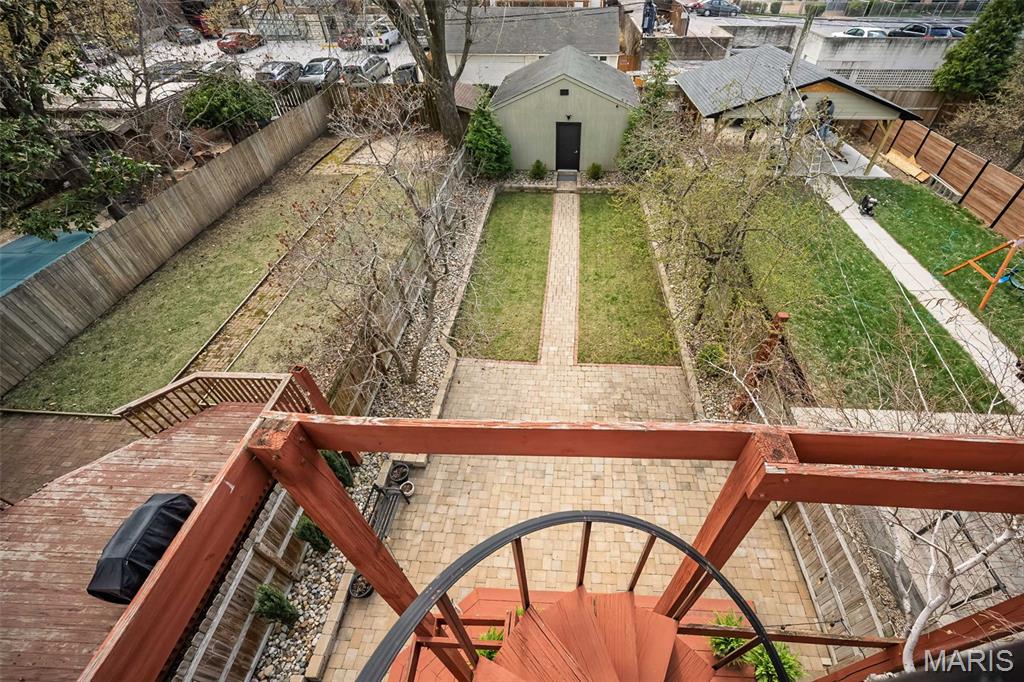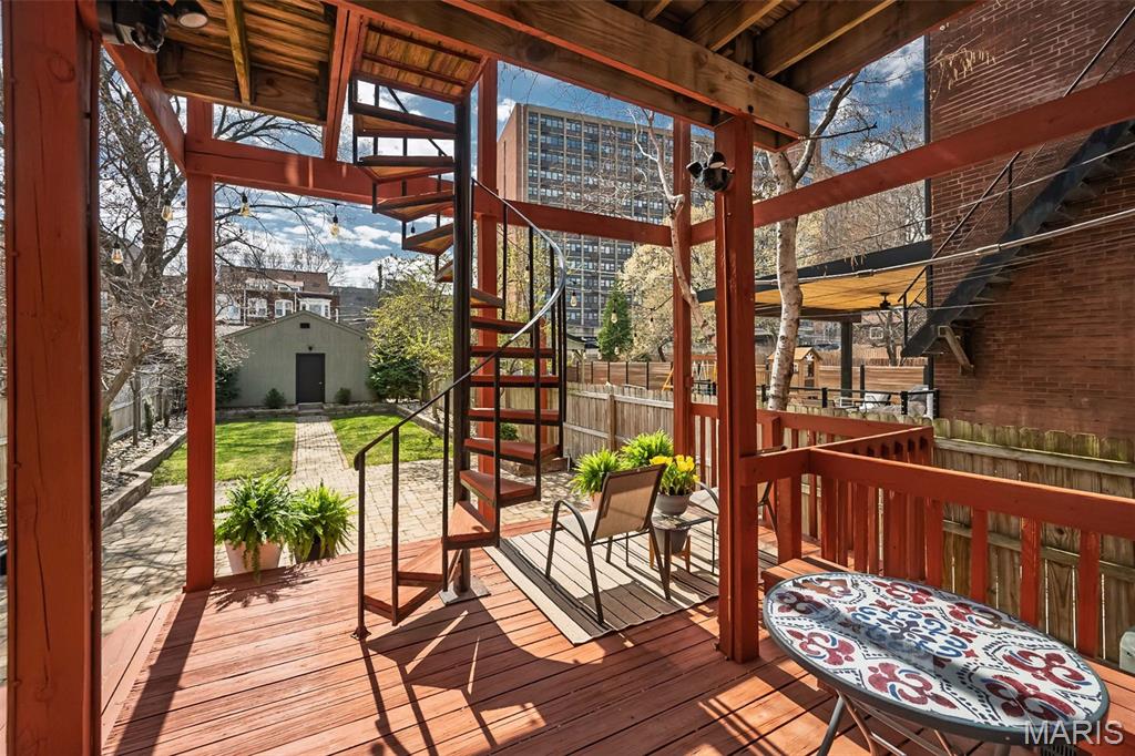 Stunning city home located on a quiet tree lined street as well as a beautiful parkway and gated on one end of the street...in the heart of the Central West End. This recently renovated home includes a foyer and open floor plan including a living room with arched window and electric fireplace, hardwood floors throughout and tons of natural light. The kitchen features an expansive 12' island, granite counter tops including seating for several people, stainless steel Bosch appliances, gas stove, two wine refrigerators and opens to both the dining area and living room. Perfect for entertaining family and friends. Speaking of which, the rear door leads to an expansive three tier deck (including a spiral staircase to the top), large brick patio, nicely landscaped yet manageable back yard. The second-floor features three bedrooms including a primary ensuite with two large walk-in closets, bathroom, washer, dryer and access to the second-floor deck. The 2nd bedroom includes a Murphy bed and the other, a decorative fireplace...perfect for an office. The 3rd floor is well suited for a guest suite and or entertaining friends with built in speakers, wet bar, full bath, w/d hook up and immediate access to the deck which includes terrific city views. The basement includes a charming wine cellar, parcel delivery bin and built in shelves providing lots of storage. Walking distance to BJC, Cortex, Whole Foods, restaurants, Forest Park and all the other amenities the CWE has to offer.