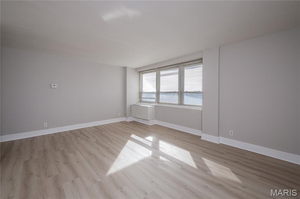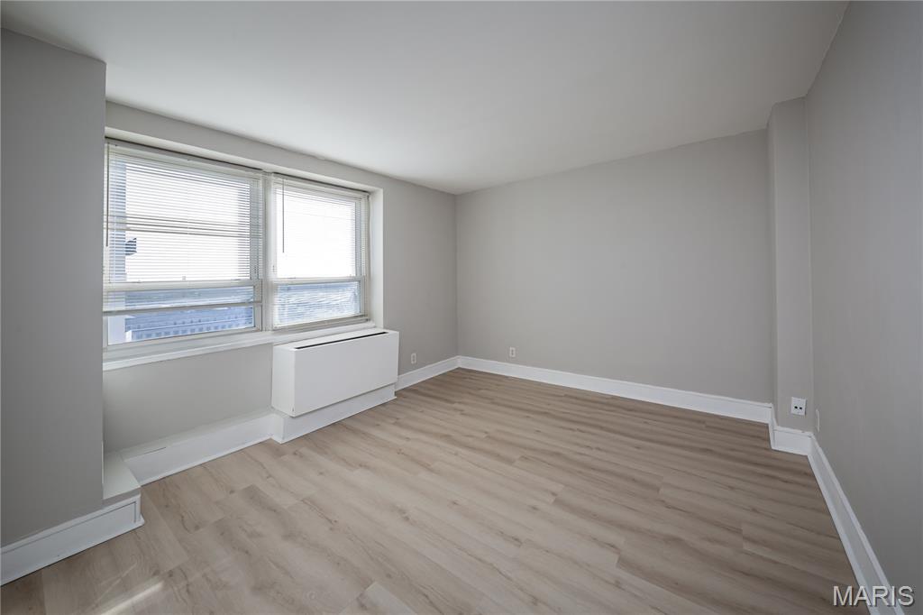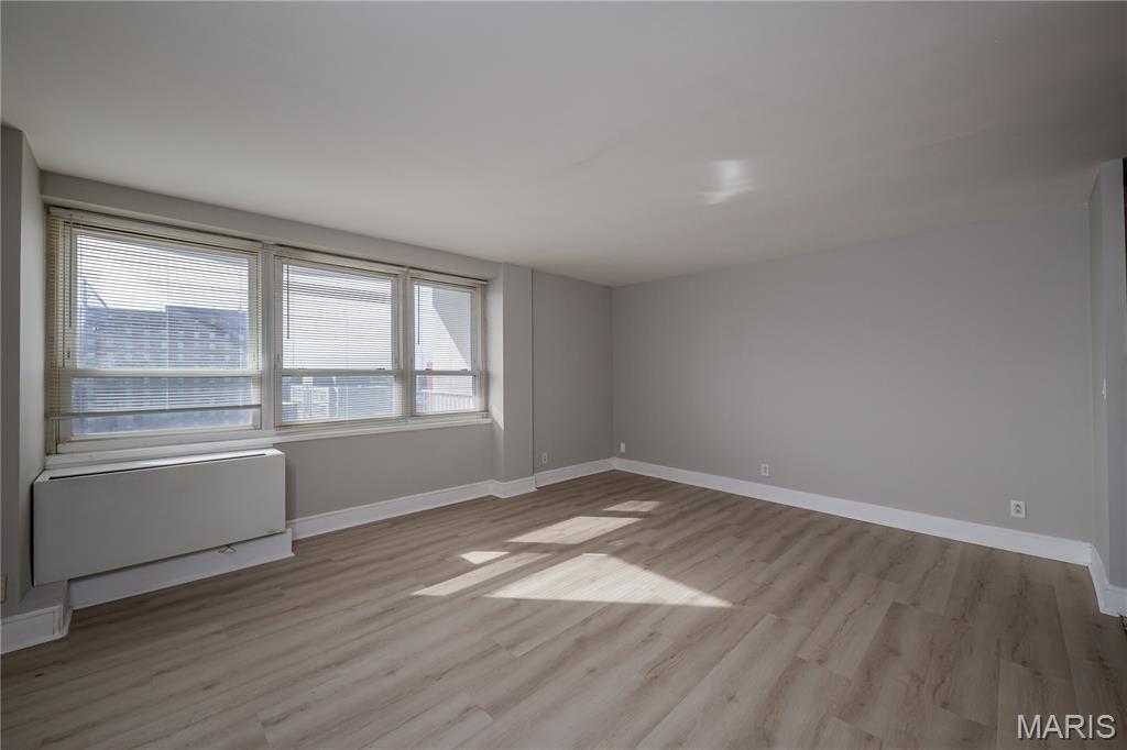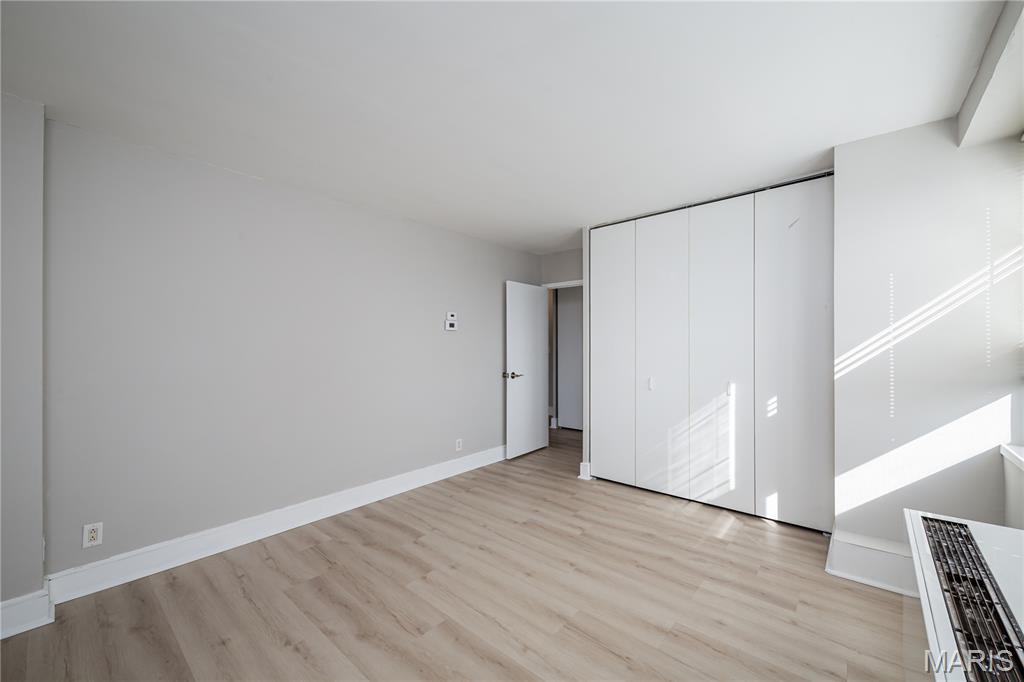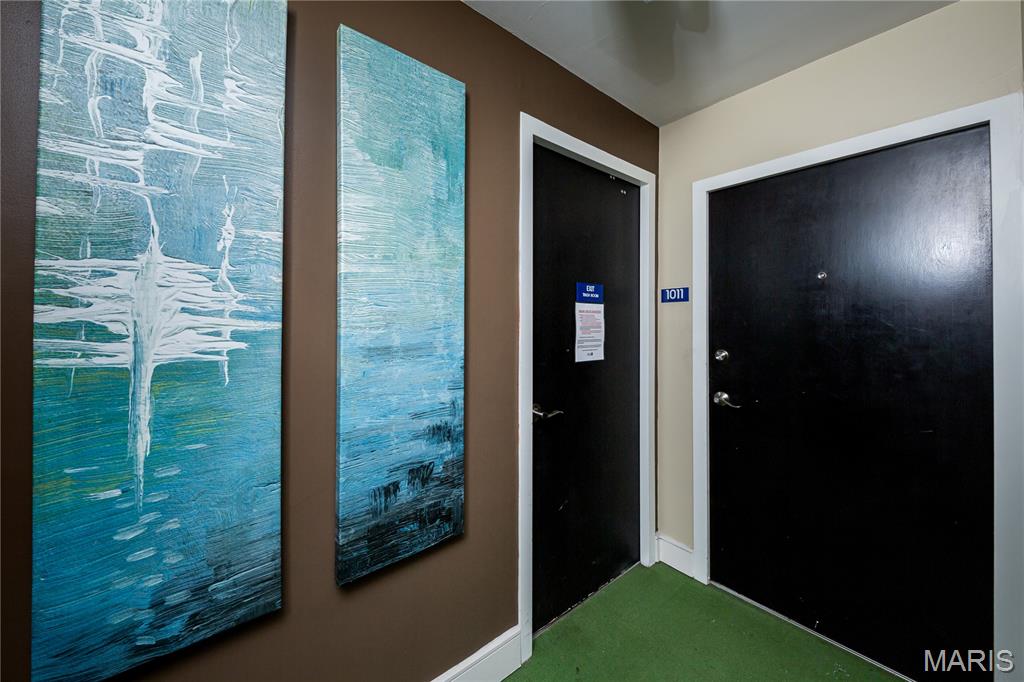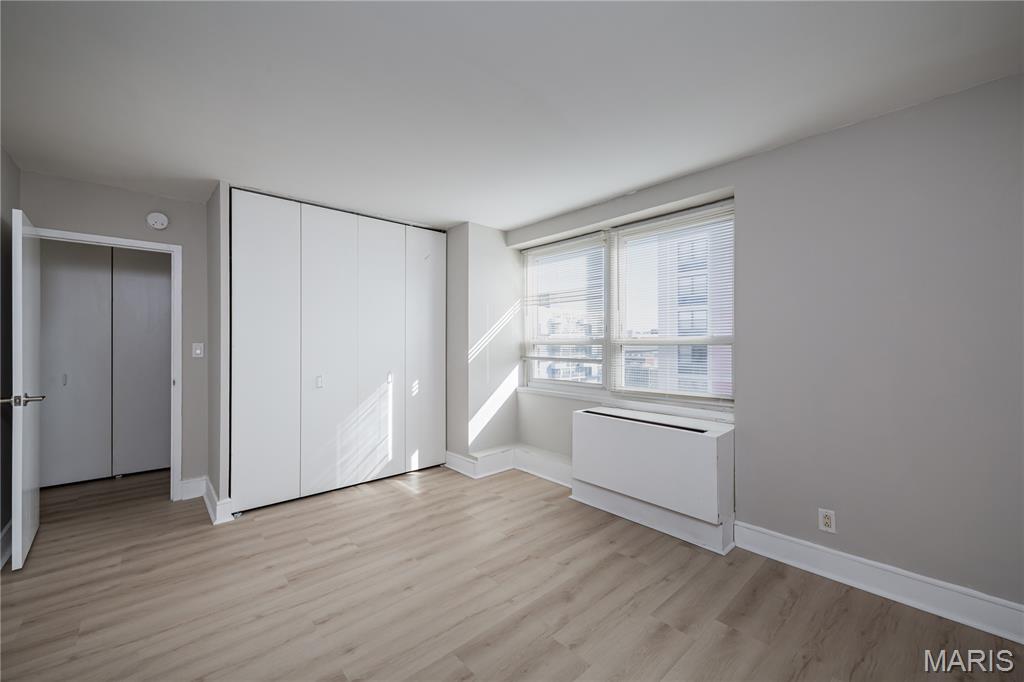 Experience vibrant downtown St. Louis living in this stylish 1-bedroom condominium located in the sought-after Blu CitySpaces building, with a convenient location and easy access to traffic, highway, and parks. Perfectly positioned in the heart of the city, this contemporary residence offers a seamless blend of comfort, convenience, and breathtaking skyline views. The open-concept layout is designed for modern urban living, featuring premium luxury vinyl plank flooring and a spacious living area that flows effortlessly onto a private balcony with stunning panoramic views of downtown St. Louis and the iconic Gateway Arch. The sleek kitchen features a granite countertop, stainless steel appliances, and a breakfast bar, ideal for everyday living and entertaining. Recent updates, including a convection microwave oven and wet cabinet, add modern functionality and style. A custom walk-in closet with floor-to-ceiling shelving provides exceptional storage, while the full bathroom is conveniently located to complement the efficient layout. Residents of Blu CitySpaces enjoy an impressive collection of resort-style amenities, including a fitness center, community laundry facilities, and an outdoor patio with grills perfect for relaxing or entertaining. The building also features an expansive game room and lounge with a pool table and a wet bar, creating a welcoming space for social gatherings. Additional conveniences include a secure bike room and a private single-car parking space accessible from the rear parking lot. Whether you are seeking a stylish downtown residence, student housing, or a convenient city retreat, this home offers an exceptional opportunity to enjoy the energy and lifestyle of downtown St. Louis. Property is offered AS-IS, WHERE-IS. Seller will not make repairs resulting from building, occupancy, or environmental inspections. Special Sale's Contract only. Welcome home!