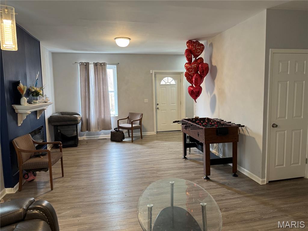You can move in yourself or keep it as a rental. Either way, someone is going to enjoy the modern open concept living. This property was completely renovated in 2024 and has a current lease for $1,800/mo ending June 2026. With updates including a first floor laundry, kitchen cabinets, granite counters, SS appliances, tile back splash, vinyl floors, 3 all new bathrooms, plumbing, insulated windows, electric fireplace, recessed lighting, ceiling fans, panel doors, trim, HVAC, water heater, 200 amp electric panel, sewer lateral, front porch and a 6 year old roof this will be a low maintenance home for years to come. The yard is fenced and has a two space parking pad. You don’t want to miss this one.