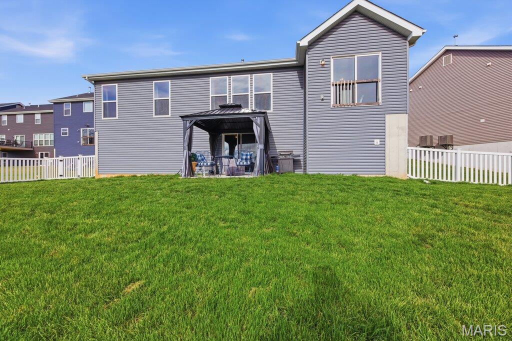 Welcome home to this beautiful, 2 years young, 3-bedroom, 2 bath home with the most amazing views. It boasts 42" custom cabinetry, quartz counter tops, a large kitchen island with plenty of seating, custom lighting, wood spindled staircase and stunning wood laminate flooring which extends throughout the main floor. The natural light floods in through the 6' windows into the vaulted oversized great room and kitchen. The sunrise views from the back of the house are breathtaking. The oversized primary bedroom is a dream, along with the spacious walk in closet and large luxury en-suite which includes soaking tub, double vanities with wave bowl sinks, enclosed water closet and walk-in shower with bench. The spacious walkout basement has a full rough-in for a future bathroom as well as plenty of storage and hang out/workout room. The walkout sliding doors lead to the large, private and level fenced in backyard with patio and gazebo for relaxing and entertaining. Home comes with a 10-year builders warranty.