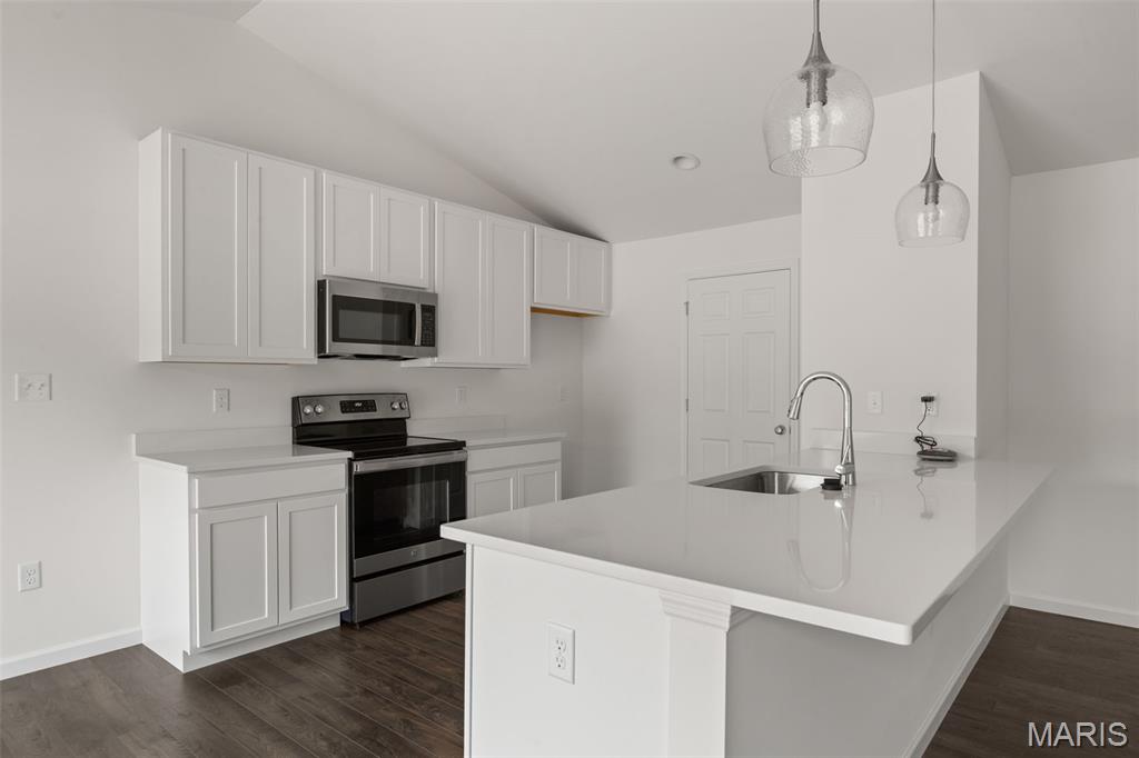 New McBride Homes Aspen ranch 3BR, 2BA will be ready this summer! Walkout homesite! Enjoy an open floor plan with a vaulted ceiling, great room with a ceiling fan, & wood laminate flooring throughout the main living areas. The kitchen features level 4 Brellin White 42” cabinetry, quartz countertops, peninsula with an extended breakfast bar, stainless steel GE appliances. The primary suite has a walk-in closet, private bath w/dual sink vanity & 5ft walk-in shower. 2 extra bedrooms & a full bath add convenience. Upgrades include 6ft windows, matte black lighting/plumbing fixtures, ceiling fan prewires, 1st floor laundry, garage coach lights & 2 panel white interior doors. The lower level has a ¾ bath rough-in for future finish. Westhaven is included in the Wentzville School District & is located off Peine Road, with easy access to both Highway 40 & Interstate 70. Enjoy peace of mind w/McBride Homes’ 10-year builders warranty & incredible customer service! Similar photos shown.