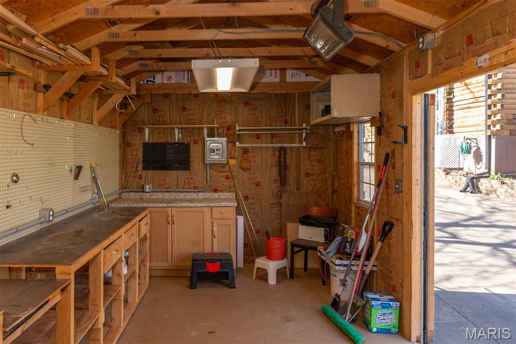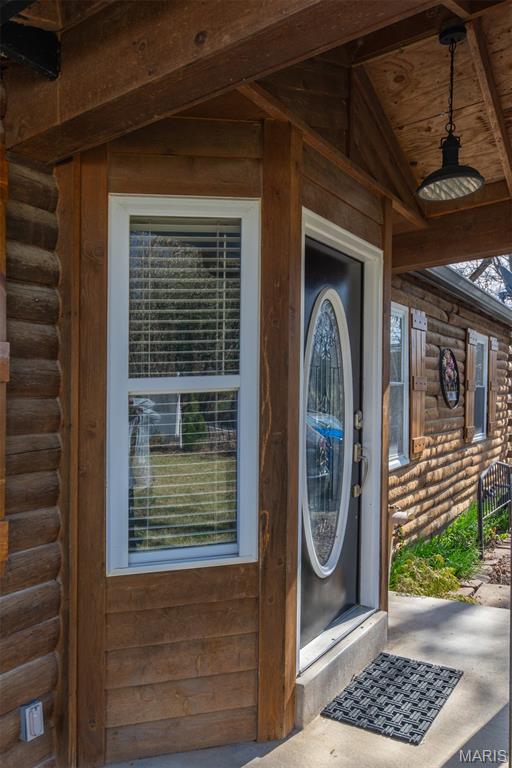 Lake life doesn’t get much better than this! Nestled along the shores of the stunning 34+ acre Cole Lake in De Soto MO, this beautifully updated 2 bed, 2 bath log cabin offers the perfect blend of rustic charm and modern comfort on over half an acre of waterfront paradise. Welcomed by great curb appeal and landscaping you will step inside to find a warm and inviting interior with plenty of updates. The main level features an updated kitchen with a farm sink, newer stainless appliances, counters, flooring and shiplap walls. The large living / dining room combo, 2 bedrooms and full updated bath round out the main level. The finished lower level provides additional living space with a family room anchored by a cozy wood-burning stove, plus two sleeping rooms—one featuring a convenient Murphy bed—making it ideal for hosting family and friends. Outdoor living is just as impressive, highlighted by a massive covered deck with two ceiling fans—perfect for relaxing while overlooking the water. Or, get out there and enjoy that lake that is offering bass, bluegill, crappie, and catfish. Cool evenings are always good for sitting around a fire near the bank or unwinding in the hot tub cabana under the deck. Additional features include 2 - 12 x 10 sheds and a 20 x 10 heated workshop. Whether you're looking for a weekend getaway or a full-time retreat, this incredible lakefront property delivers the lifestyle you’ve been dreaming of.