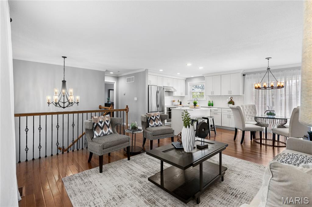 Beautifully maintained split-level home offering an open floor plan, modern updates, and comfortable living spaces throughout. Step inside to find gleaming hardwood floors and a bright, airy main level that seamlessly connects the living room, dining area, and kitchen—perfect for both everyday living and entertaining. The upper level features well-sized bedrooms and a full bath, while the lower level provides additional flexible living space ideal for a family room, home office, or recreation area. Enjoy outdoor living on the spacious deck overlooking the backyard—perfect for relaxing or hosting gatherings. Conveniently located near major highways, shopping, dining, and within the sought-after Parkway School District, this home combines comfort, style, and accessibility.