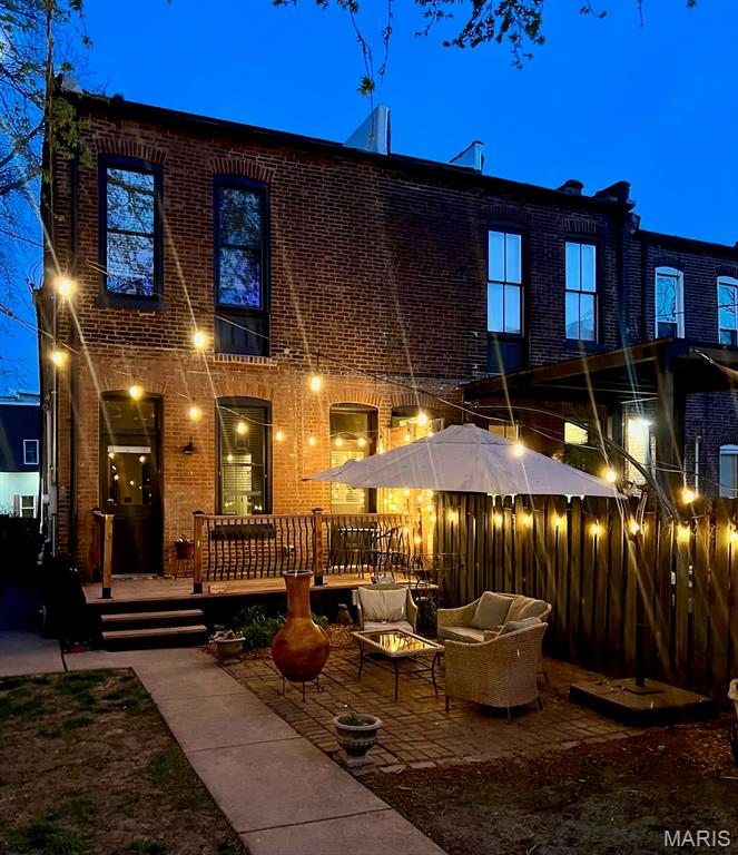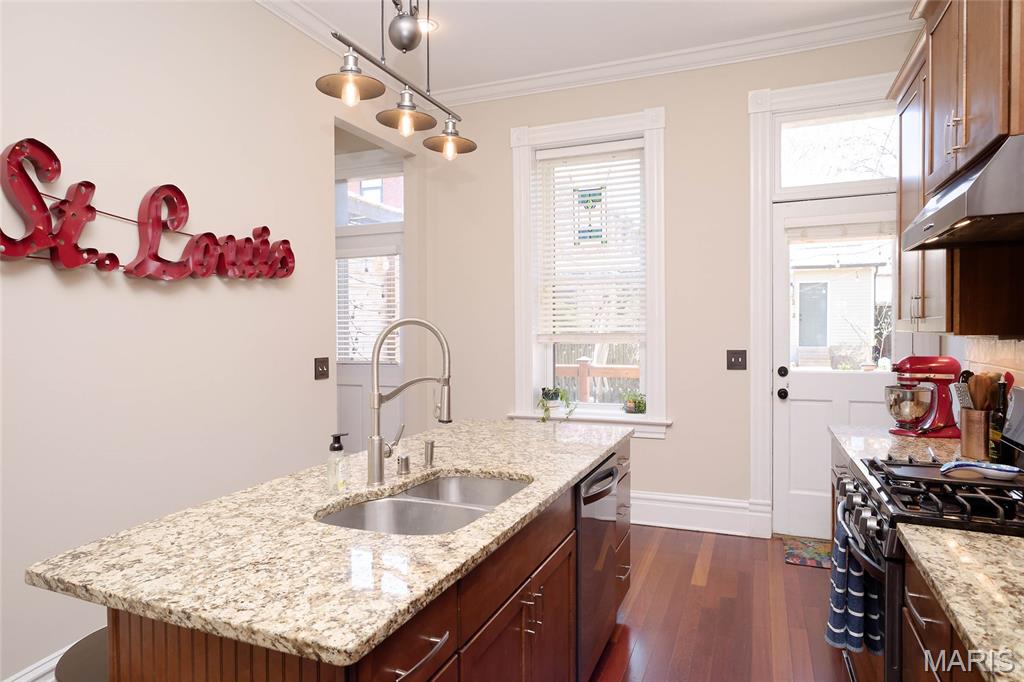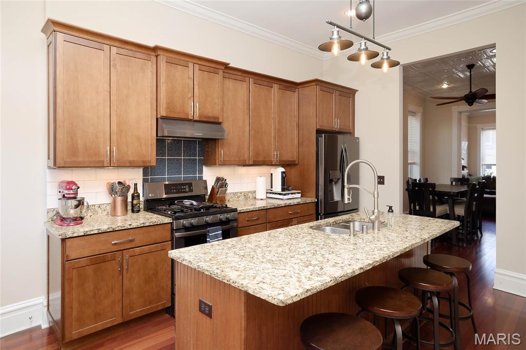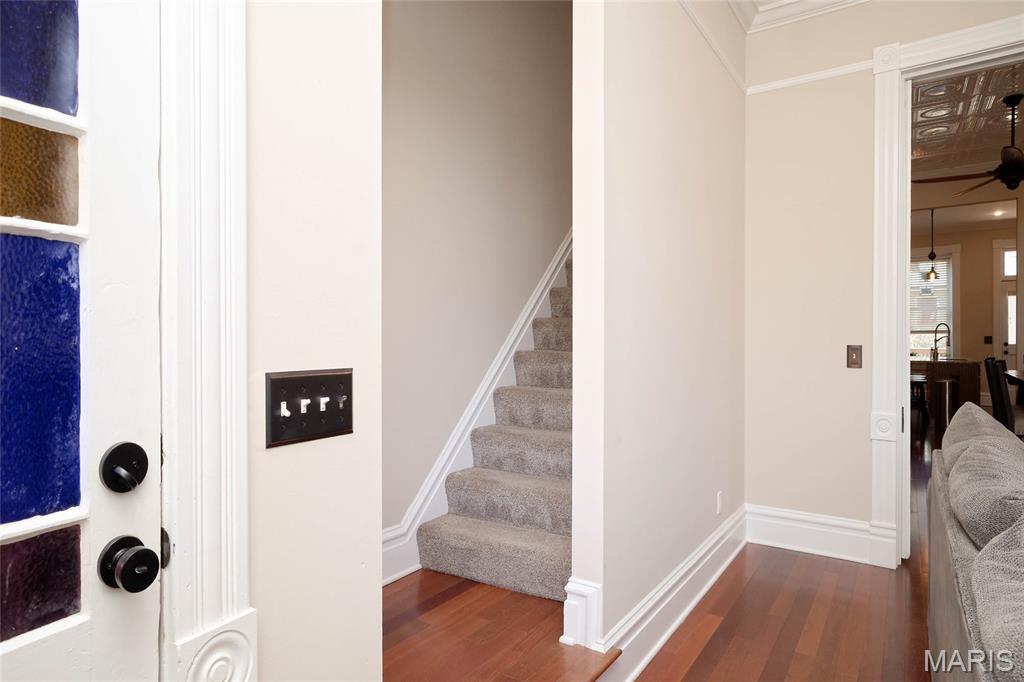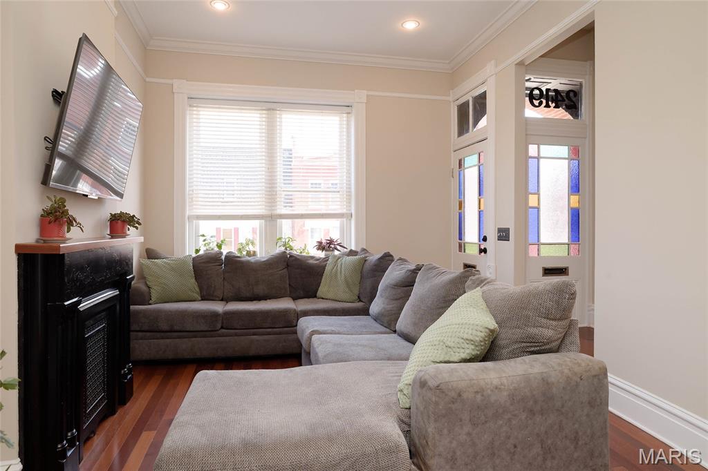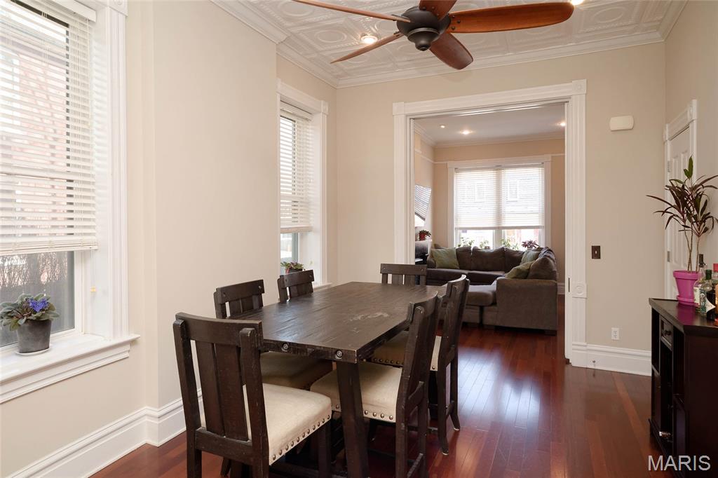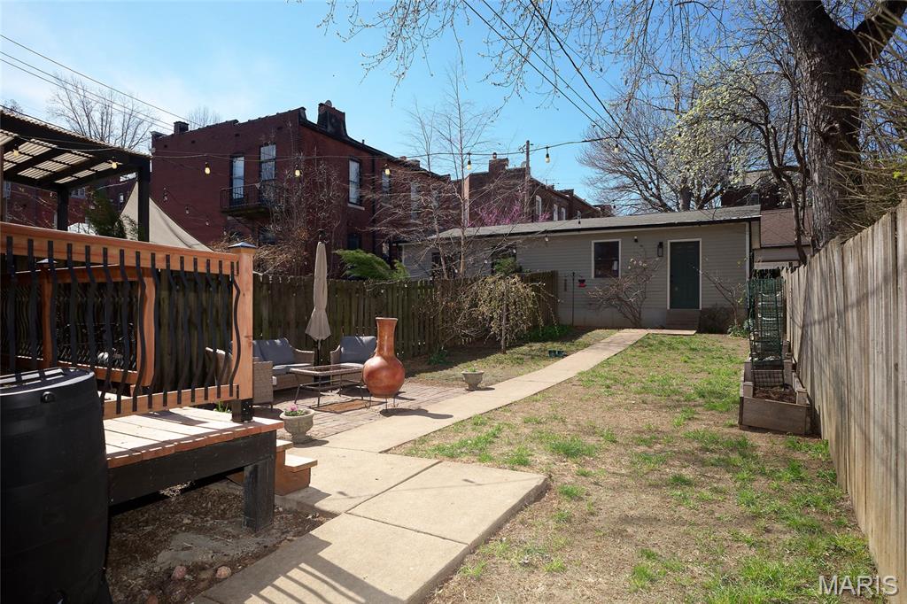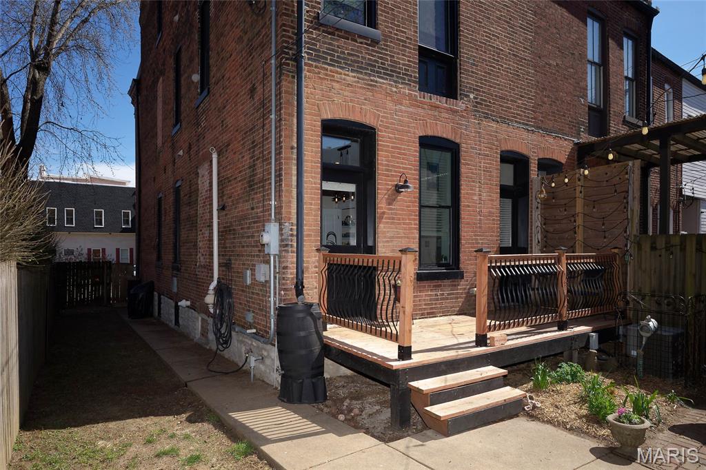 Updated 4-bedroom, 2.5-bath townhouse-style home in the heart of historic Soulard, complete with a 2-car garage and finished lower level. 4 levels of living. Tucked behind a charming side-yard entrance, this home offers a private fenced backyard with patio, plus a spacious deck off the kitchen—perfect for entertaining. Meticulous maintained home. Inside, you’ll find timeless character blended with thoughtful updates, including hardwood floors, pocket doors, paneled doors, white historic trim and moldings, two decorative fireplaces, ornate dining room ceiling, extensive upgraded lighting and fixtures, freshly painted interior, closet built-ins, and so much more. The kitchen features custom cabinetry, granite countertops, and stainless steel appliances 2020 The spacious primary suite offers abundant closet space and convenient laundry, while a rear bedroom on the second floor makes an ideal home office. The third floor includes two additional bedrooms and a tasteful full bath, giving the home plenty of flexible living space. Zoned HVAC adds comfort and efficiency. Upstairs furnace 2026 Major updates include new side and rear windows in 2023 and tuckpointing completed in 2025. White TPO roof w/25 year warranty 2020. Stairs carpet 2021 along with LTV one the second and third floor Enjoy all that Soulard has to offer just outside your door—restaurants, shops, bars, Soulard Market, and Anheuser-Busch are all within walking distance. Known as the Community of Gardens, Soulard is also home to the beloved French Dog Park. 100 steps to Vincent's Market, which the sellers hate to leave.