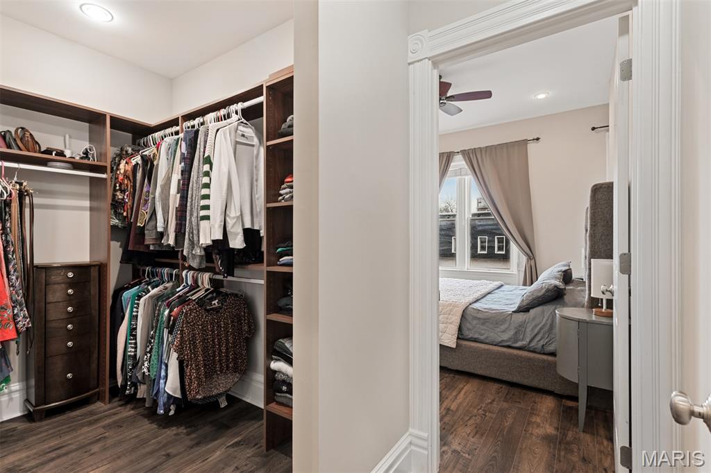 Updated 4-bedroom, 2.5-bath townhouse-style home in the heart of historic Soulard, complete with a 2-car garage and finished lower level. 4 levels of living. Tucked behind a charming side-yard entrance, this home offers a private fenced backyard with patio, plus a spacious deck off the kitchen—perfect for entertaining. Meticulous maintained home. Inside, you’ll find timeless character blended with thoughtful updates, including hardwood floors, pocket doors, paneled doors, white historic trim and moldings, two decorative fireplaces, ornate dining room ceiling, extensive upgraded lighting and fixtures, freshly painted interior, closet built-ins, and so much more. The kitchen features custom cabinetry, granite countertops, and stainless steel appliances 2020 The spacious primary suite offers abundant closet space and convenient laundry, while a rear bedroom on the second floor makes an ideal home office. The third floor includes two additional bedrooms and a tasteful full bath, giving the home plenty of flexible living space. Zoned HVAC adds comfort and efficiency. Upstairs furnace 2026 Major updates include new side and rear windows in 2023 and tuckpointing completed in 2025. White TPO roof w/25 year warranty 2020. Stairs carpet 2021 along with LTV one the second and third floor Enjoy all that Soulard has to offer just outside your door—restaurants, shops, bars, Soulard Market, and Anheuser-Busch are all within walking distance. Known as the Community of Gardens, Soulard is also home to the beloved French Dog Park. 100 steps to Vincent's Market, which the sellers hate to leave.