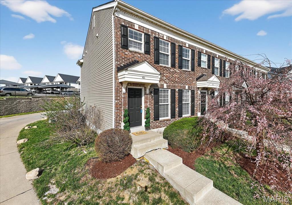 Beautiful end unit townhouse style condo in the Villages of Springhurst offering 2 bedrooms and 2.5 baths with a one car garage. The main level features a spacious living area, convenient laundry with washer and dryer included, and a functional layout ideal for everyday living. The kitchen opens to a breakfast area with access to a private patio. Upstairs includes a loft area perfect for a home office or additional living space. Both bedrooms include walk-in closets, including a primary suite with a full bath. The unfinished basement offers storage or future finishing potential with an egress window and rough-in bath. Enjoy community amenities including a pool, walking trails, park, pond, and basketball court. Conveniently located near shopping, grocery stores, parks, and restaurants with easy access to Hwy 64/40 and 364.