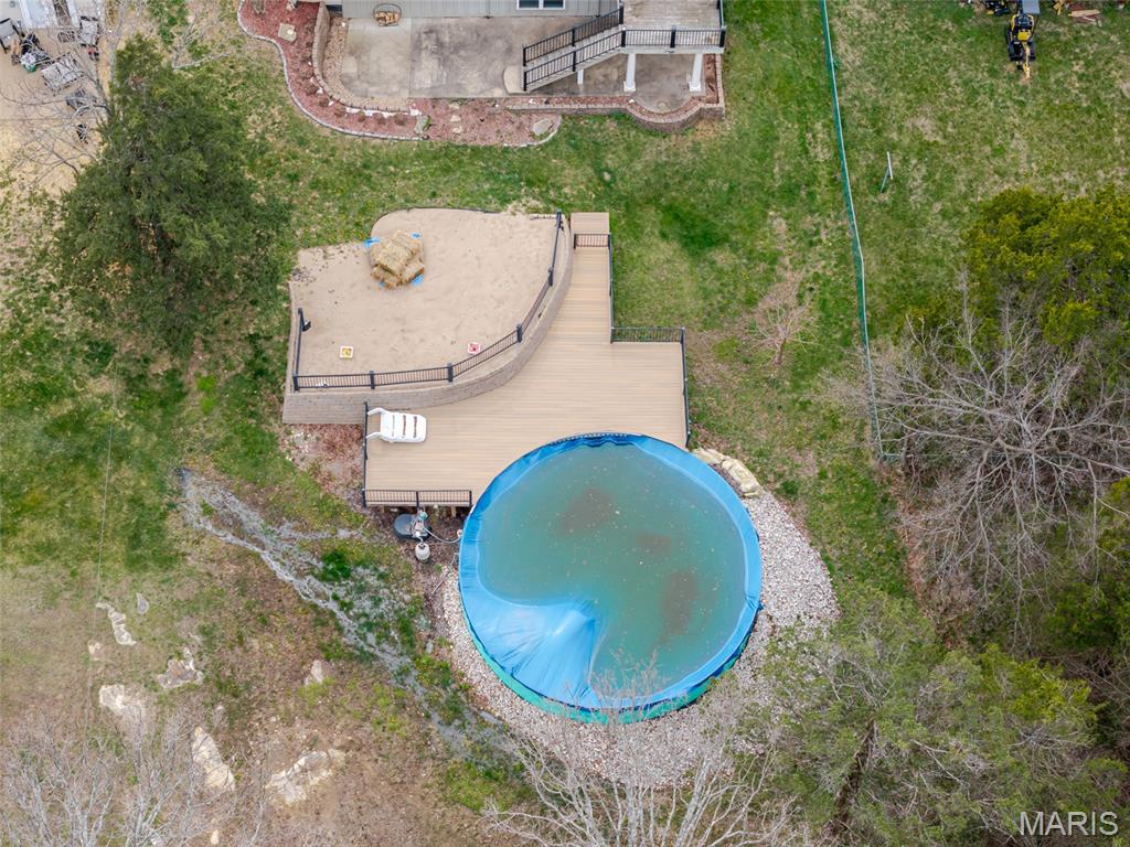 Welcome to lake living in Summer Set, a sought-after private lake community in DeSoto, Missouri known for its scenic setting and recreational amenities. This spacious 3-bedroom, 3-bath home offers a functional layout with multiple living and entertaining areas. A covered front porch creates a welcoming first impression, while inside you’ll find a blend of wood flooring and carpeting throughout the main living spaces. The home features a custom-built kitchen designed for both style and functionality, offering a central space for everyday living and gathering. The primary suite includes a generously sized bedroom and a large closet, providing ample storage and comfort. The finished walkout basement adds significant living space and is designed with entertaining in mind. It includes a dedicated theater room and a large great room with a bar and built-in kegerator. Sliding glass doors lead directly to a patio, creating a seamless transition between indoor and outdoor living. Outdoor features continue to impress with a large deck and a 33-foot above-ground pool surrounded by low-maintenance composite decking. The 17,559 sq ft lot (approximately 0.40 acres) offers a combination of flat, usable yard and wooded surroundings, providing both space and privacy. Additional highlights include a two-car garage, concrete driveway, and multiple areas to enjoy the outdoors. Located within the Summer Set community, residents have access to lakes, beaches, and recreational amenities while remaining conveniently close to DeSoto for shopping, dining, and everyday needs. This home offers a strong combination of indoor space, outdoor features, and lake community living. Room dimensions can be found in the photos.