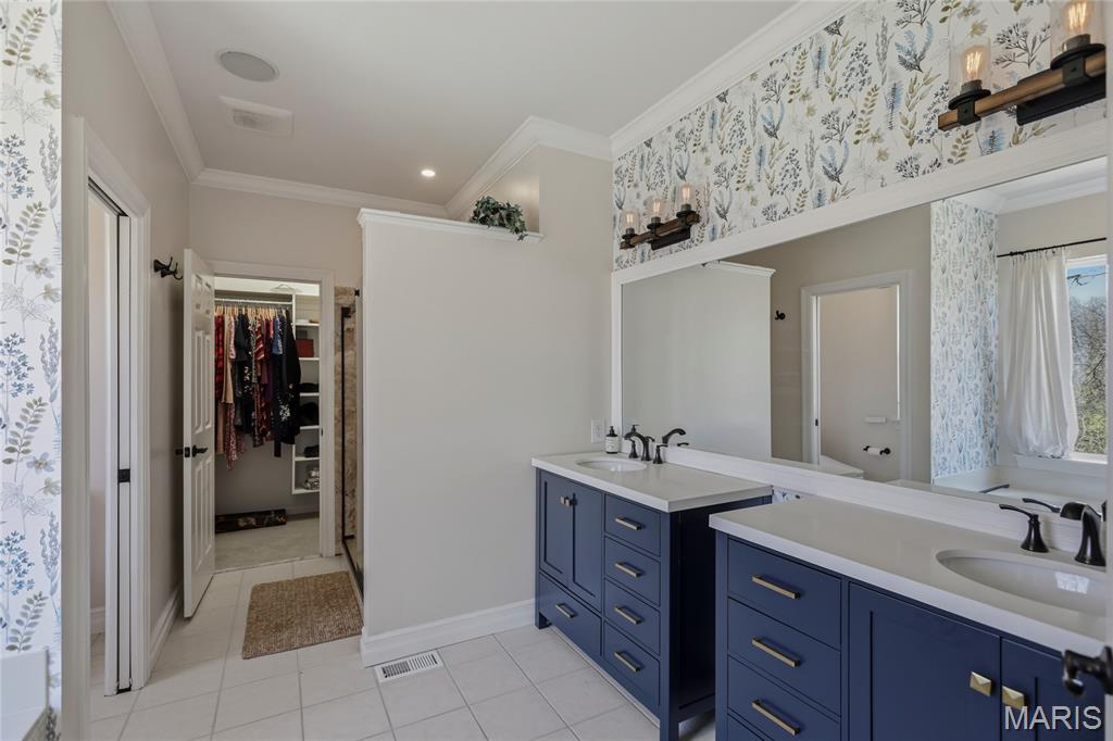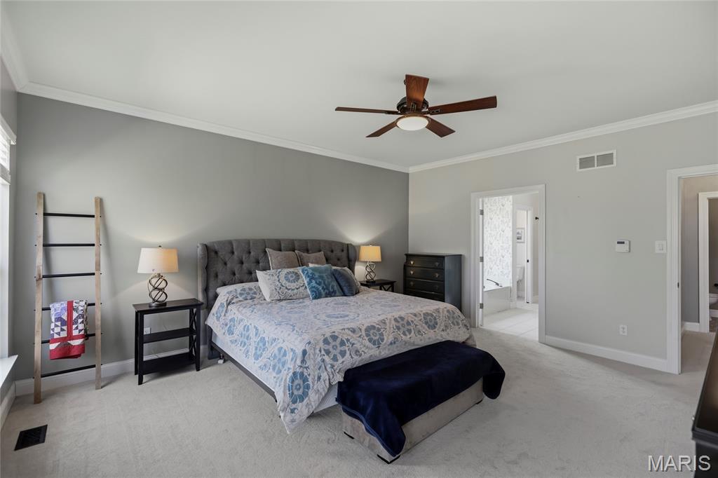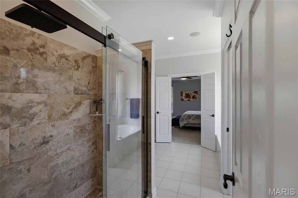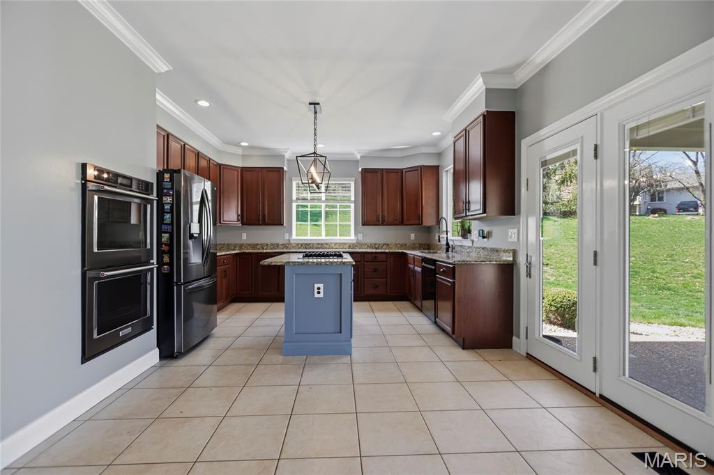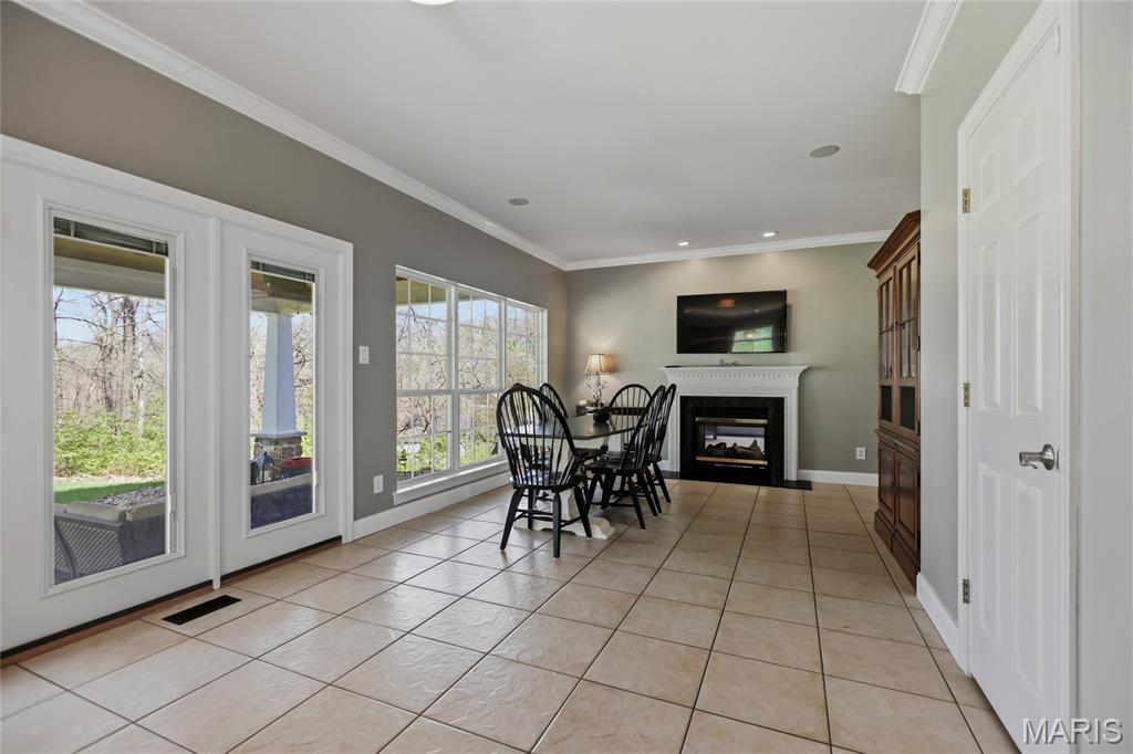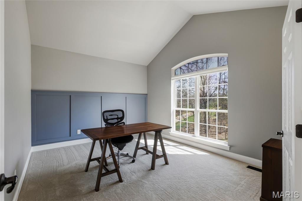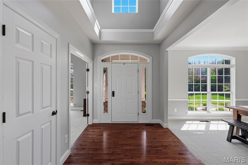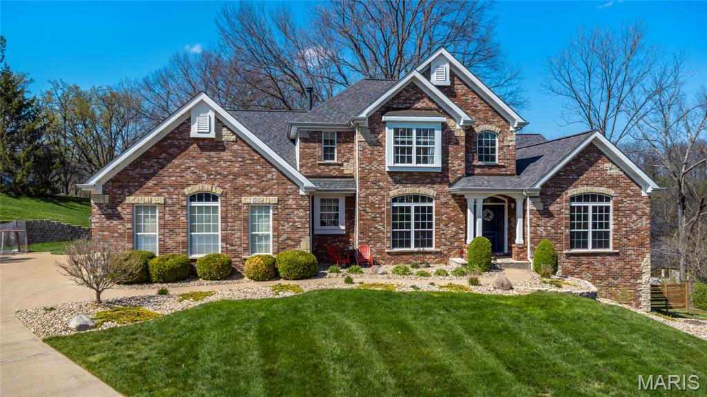 Open Sat, 4/4, 1-3pm. Tucked away on a quiet cul-de-sac in highly sought-after Clarkson Valley, this beautifully updated home offers the perfect blend of elegance, comfort, and thoughtful design. From the moment you step into the hardwood-floored entry, you’ll appreciate the light-filled interior highlighted by transom windows and updated lighting throughout the main level. A vaulted main-floor office features a striking new accent wall, while the impressive two-story great room showcases a fireplace with custom cabinetry surround—ideal for both everyday living and entertaining. The formal dining room provides a refined space for gatherings. The main-floor primary suite is a private retreat, offering a spacious sleeping area and a beautifully updated en suite bath with dual adult-height vanities, a soaking tub, separate shower, private water closet, and a large walk-in closet. The eat-in kitchen is both functional and inviting, featuring 42” hardwood soft-close cabinetry, granite countertops, a center island with downdraft cooktop, stainless steel double wall ovens, and a walk-in pantry. A see-through fireplace connects the kitchen to the great room, while the breakfast area opens seamlessly to a stunning covered porch—perfect for enjoying the serene, wooded backdrop. Upstairs, one bedroom includes its own en suite bath, while two additional bedrooms share a Jack & Jill bath. New carpet throughout the main and upper levels adds a fresh, move-in-ready feel. The finished walk-out lower level is designed for entertaining, complete with a spacious bar, multiple gathering areas, and access to a private patio featuring a newer saltwater hot tub nestled among the trees. A full bath with a steam shower adds a spa-like touch. Additional highlights include an updated powder room, main-floor laundry, and a side-entry three-car garage with built-in cabinetry. Located in the award-winning Rockwood School District, this exceptional property offers luxury living in one of the area’s most desirable communities.
