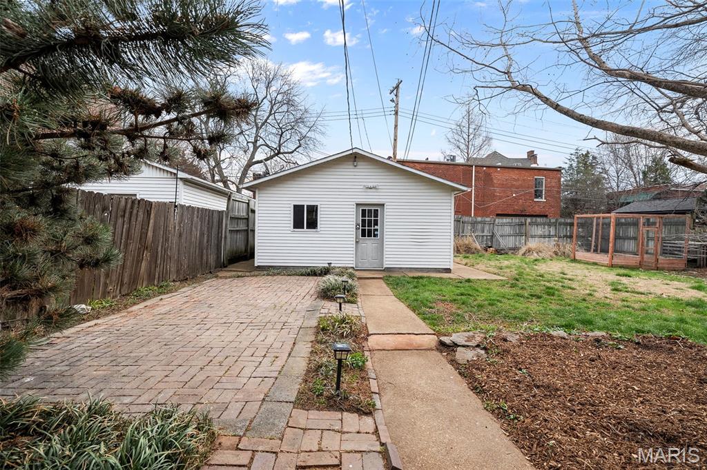 Benton Park Historic District Beauty on a Rare Double Lot! This stunning, all-brick 3 bed/3 bath home perfectly blends historic charm with modern updates. Step inside to a spacious living room featuring soaring ceilings, rich hardwood floors, and a cozy fireplace—ideal for both relaxing and entertaining. The thoughtfully updated kitchen boasts granite countertops, stainless steel appliances, and a stylish backsplash, while the convenience of main floor laundry adds to the home’s functionality. Upstairs, you’ll find three generously sized bedrooms, including a large primary bedroom and a charming walk-out balcony off the second bedroom—perfect for morning coffee or evening unwinding. Each level also offers a full bathroom with modern finishes. The partially finished lower level expands your living space with durable epoxy flooring and a luxurious jetted tub—ideal for a home gym, recreation area, or retreat. Outside, enjoy your own private oasis with a fully fenced, level backyard featuring lush gardens filled with native plants, perennials, and a thoughtfully designed rain garden. A brick paver patio sets the stage for outdoor gatherings, and the oversized 2-car garage provides ample storage and parking. With potential for subdivision, the lot offers incredible flexibility and investment opportunity. Additional updates include a high-efficiency American Standard furnace with humidifier and air purifier (2023), new tile flooring in the upper bathroom (2026), dishwasher (2022), and compost bin (2024). All this just moments from parks, local favorites, shopping, and dining—this is city living at its finest.
