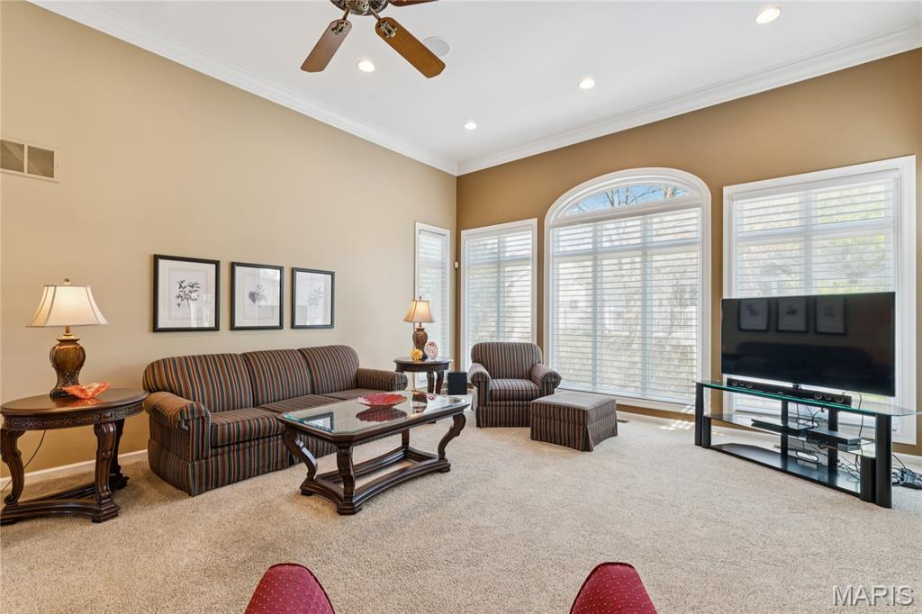 Stunning villa-style home in a gated, low-maintenance community! This move-in-ready home offers an open floor plan, soaring ceilings, hardwood floors, and abundant natural light throughout. Spacious great room with fireplace flows seamlessly into the kitchen featuring custom cabinetry, center island, and breakfast area with access to the elevated deck—perfect for entertaining. Main-level primary suite with a recently remodeled luxury bath showcasing a soaking tub, walk-in shower, and double vanity. Finished lower level offers two bedrooms plus a flexible room with custom built-ins—ideal for a home office or additional bedroom—along with a large rec space and wet bar. Private outdoor setting with deck and patio below. 2-car garage. Prime location near shopping, dining, hospitals, and highways. Turnkey, gated villa living—priced to sell!