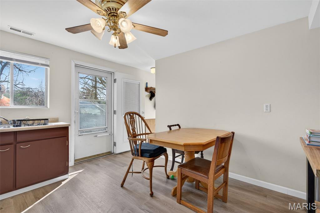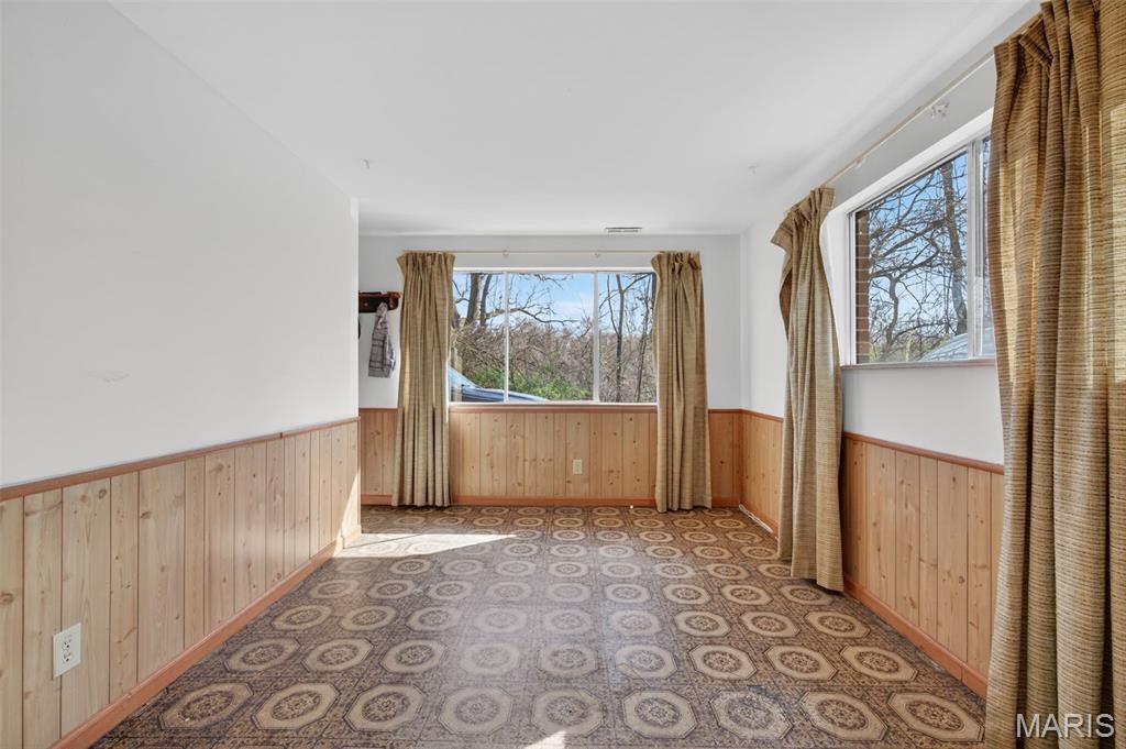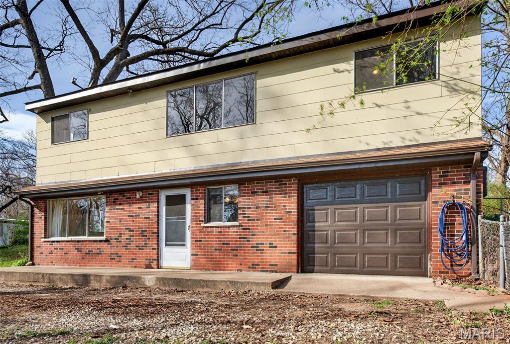 Welcome to this 3 bed, 2 bath home tucked away at the end of a quiet street, offering both privacy and convenience. Located just minutes from Highways 141, 30, and 270, you’ll enjoy quick access to everything, including shopping, dining, and entertainment at Gravois Bluffs. Step inside to find a spacious and functional layout designed for everyday living. The main level features a bright living area filled with natural light and elevated views, along with a dedicated home office, perfect for remote work or flexible use. The lower level offers additional living space with a cozy kitchen and den, creating the perfect setup for entertaining, relaxing, or hosting guests. This versatile layout provides multiple living areas to fit a variety of lifestyles. Outside, the large yard is ready for summer gatherings, pets, and outdoor enjoyment, with a separate fenced area for added convenience. The tuck-under garage offers plenty of space for storage, hobbies, or a workshop. With its quiet setting, flexible layout, and prime location, this home is a great opportunity for anyone looking for comfort, space, and convenience all in one.