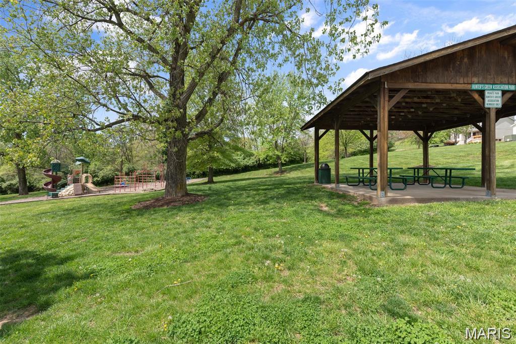 Welcome to 132 Hunters Green Lane—an updated gem in the established Hunters Green subdivision that perfectly balances modern style, everyday comfort, and a peaceful, private setting. Conveniently located just minutes from I-44, shopping, and dining, this home offers both accessibility and tranquility. Inside, you will find soaring vaulted ceilings and sun-filled living spaces that create an open, inviting feel, with 3 bedrooms and an office in the finished basement, there is room for the whole family. The kitchen has been tastefully updated with shaker-style cabinetry, quartz countertops, and a clean, contemporary design that’s ideal for both daily living and entertaining. All three full bathrooms feature upgraded tile flooring, adding a polished, cohesive touch throughout. Step outside to a maintenance-free deck overlooking mature trees—perfect for relaxing or hosting while enjoying added privacy. Major updates have already been taken care of, including a newer roof, HVAC system, water heater, and main water valve, giving peace of mind for years to come. The neighborhood is also equipped with high-speed fiber internet, making work-from-home and streaming effortless. Residents enjoy access to community amenities such as a private pavilion, playground, and a scenic catch-and-release fishing pond—all within walking distance. Located in the highly regarded Rockwood School District, this move-in-ready home offers a rare combination of convenience, comfort, and community in one of Eureka’s most desirable neighborhoods.